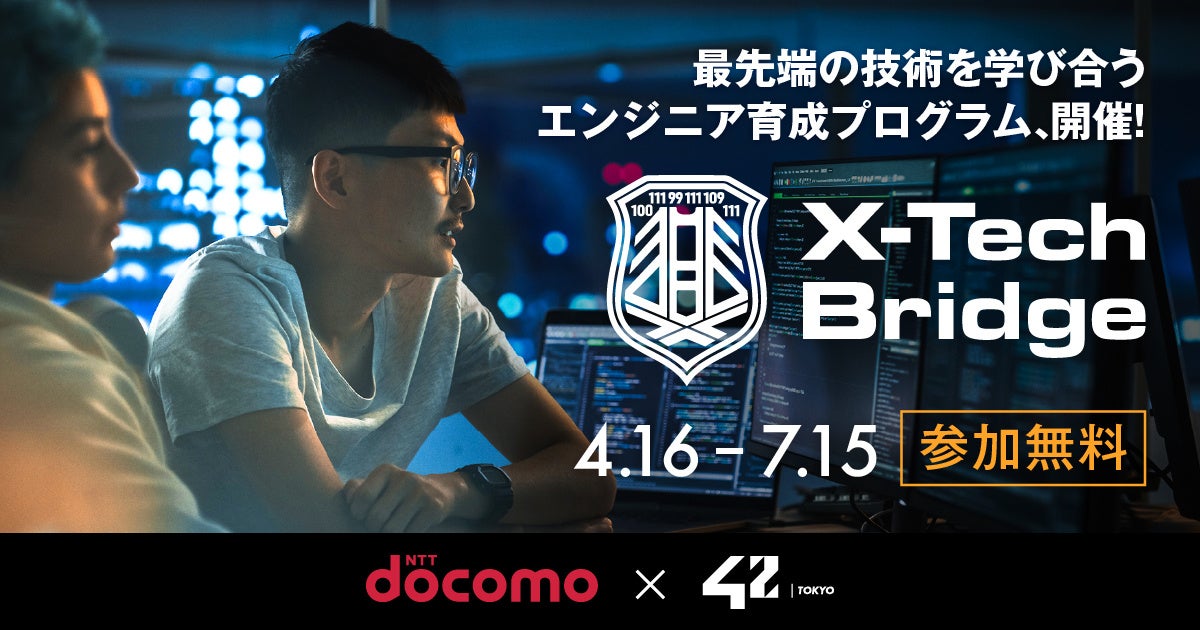 一般社団法人42 Tokyo(本社:東京都港区、代表理事:坂之上洋子、以下「42 Tokyo」)と株式会社NTTドコモ(本社:東京都千代田区、代表取締役社長:井伊基之、以下「ドコモ」)は、無料で受講可能なエンジニア育成プログラム「X-Tech Bridge」(クロステックブリッジ、以下、X-Tech Bridge)を共同で開設し、その初の講座として「メタバース空間のゲーム開発」を2024年4月16日(火)から開始します。