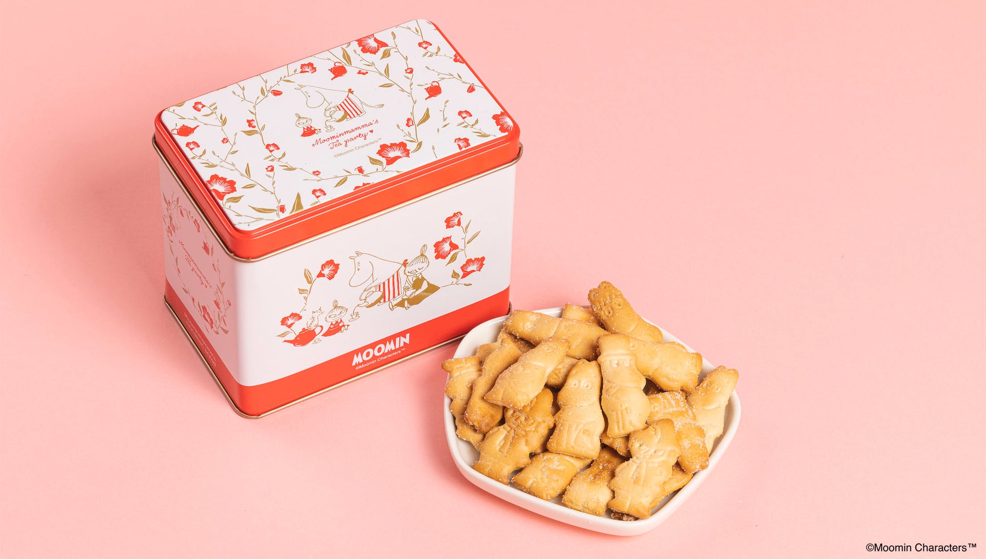 ムーミンママがデザインされた缶の中にはシナモンとカルダモンが香る芳ばしい焼き菓子が。