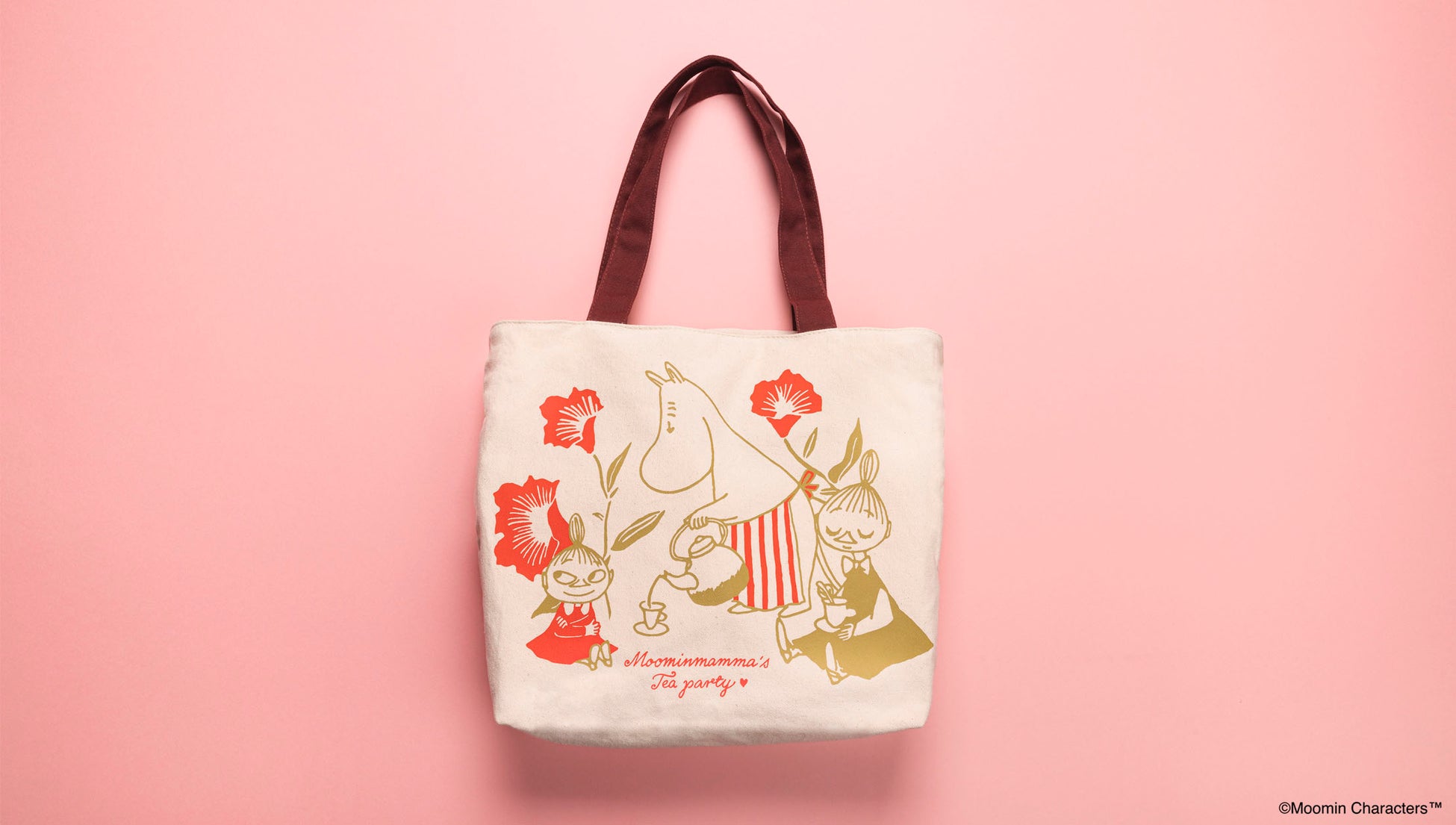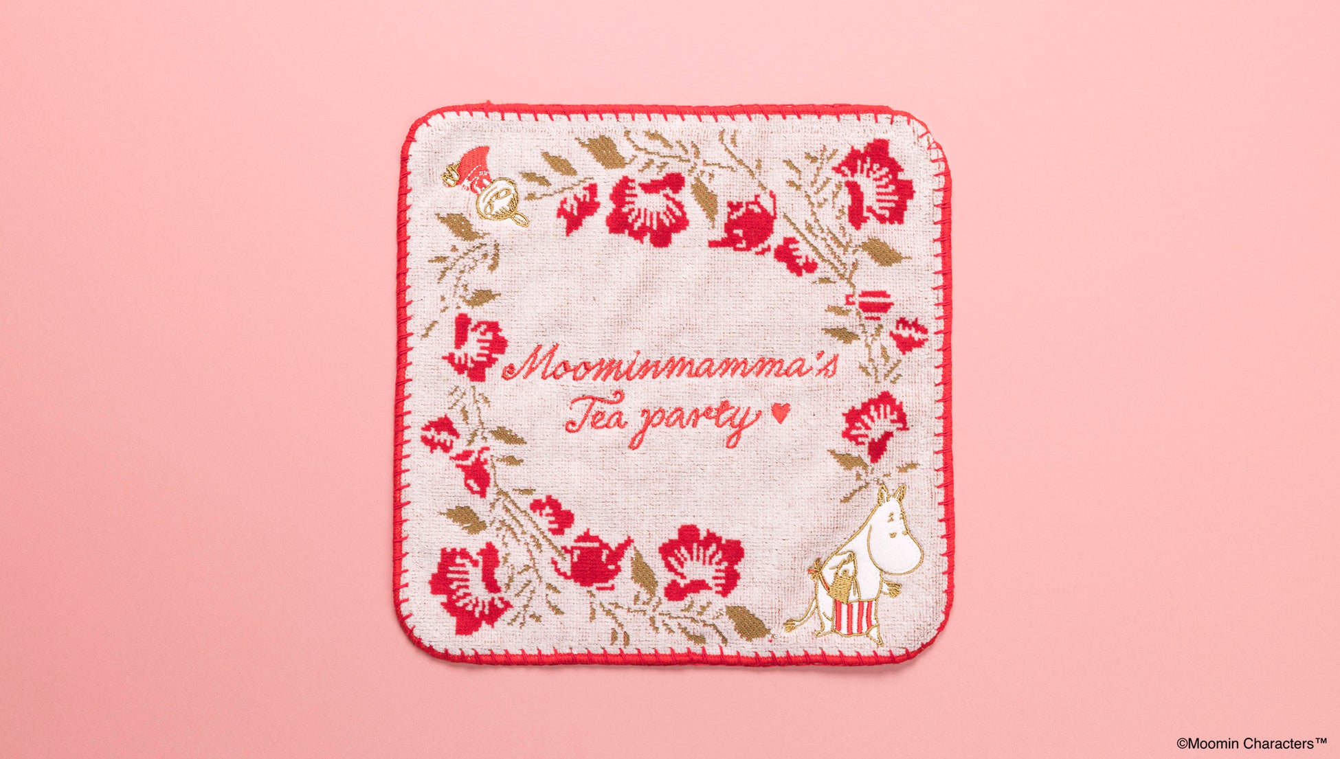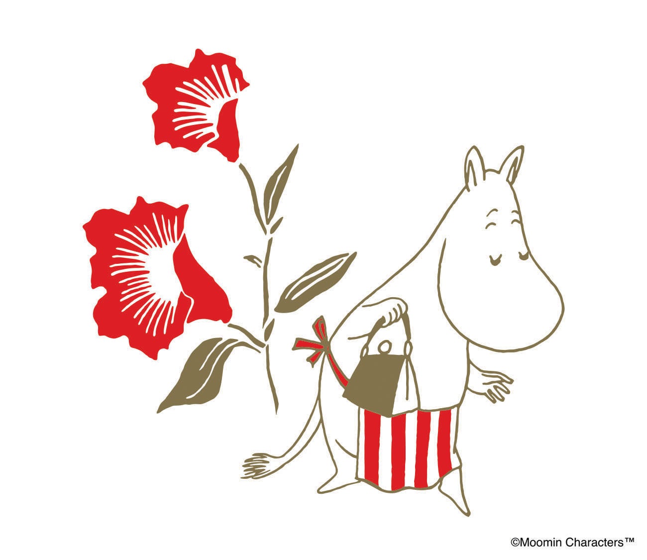 フィンランドから届いた、赤いお花に囲まれたムーミンママの素敵なデザインは、お庭でお茶を振る舞う、おもてなしが大好きなムーミンママをイメージして作られました。