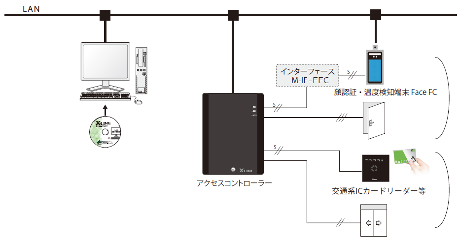 ■システム構成:入退室管理+顔認証・温度検知端末連携システム「X-LINE+Face FC」