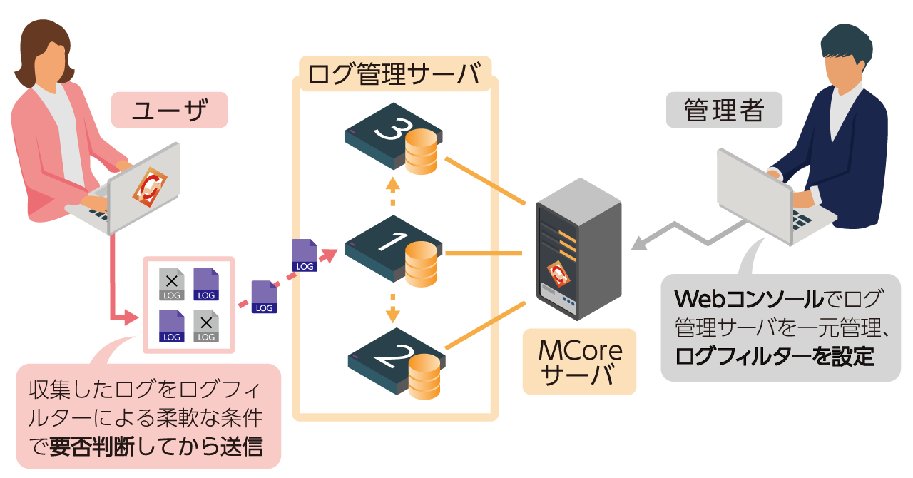図4:ログ管理サーバの一括管理、柔軟なログフィルター