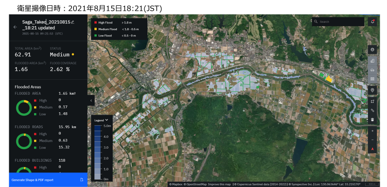 今回、株式会社Synspective(本社:東京都江東区、代表取締役CEO:新井元行、以下 Synspective)及び株式会社島内エンジニア(本社:佐賀県佐賀市、代表取締役:徳富泰信、以下 島内エンジニア)も参画し、衛星データ活用により、全国的に頻発している豪雨等への水災害への対策の強化に加え、Synspectiveの浸⽔被害モニタリングサービスの精度向上も目指し、平時・災害時での実運用に向けた実証実験を実施しました。