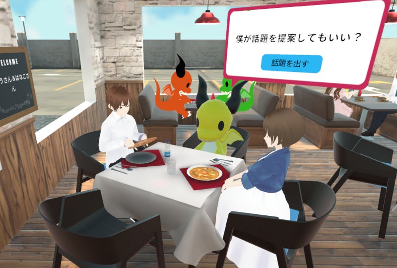 めもどらたちが集まるレストラン。ワイワイガヤガヤとした雰囲気です。めもどらたちから話題が出されます。