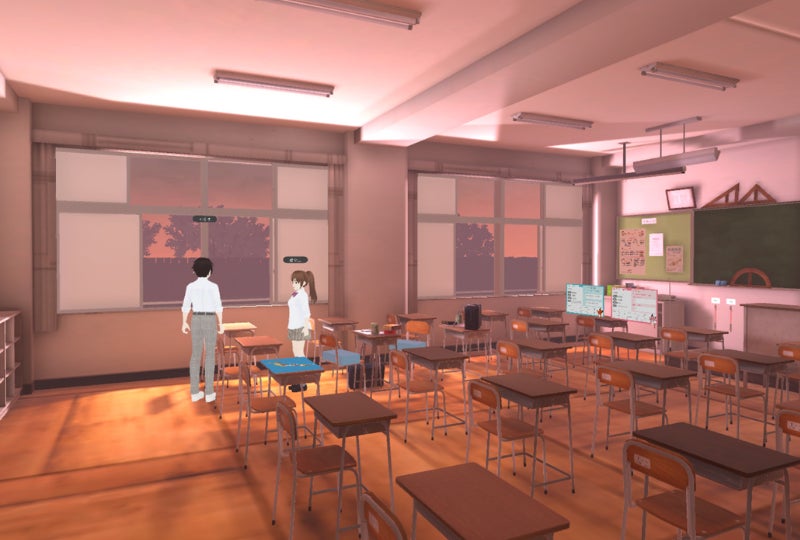 放課後の教室をイメージしています。夕暮れは、告白が成功しやすい時間です。制服アバターを着て、学生時代のことについて思い出話をしてみましょう。