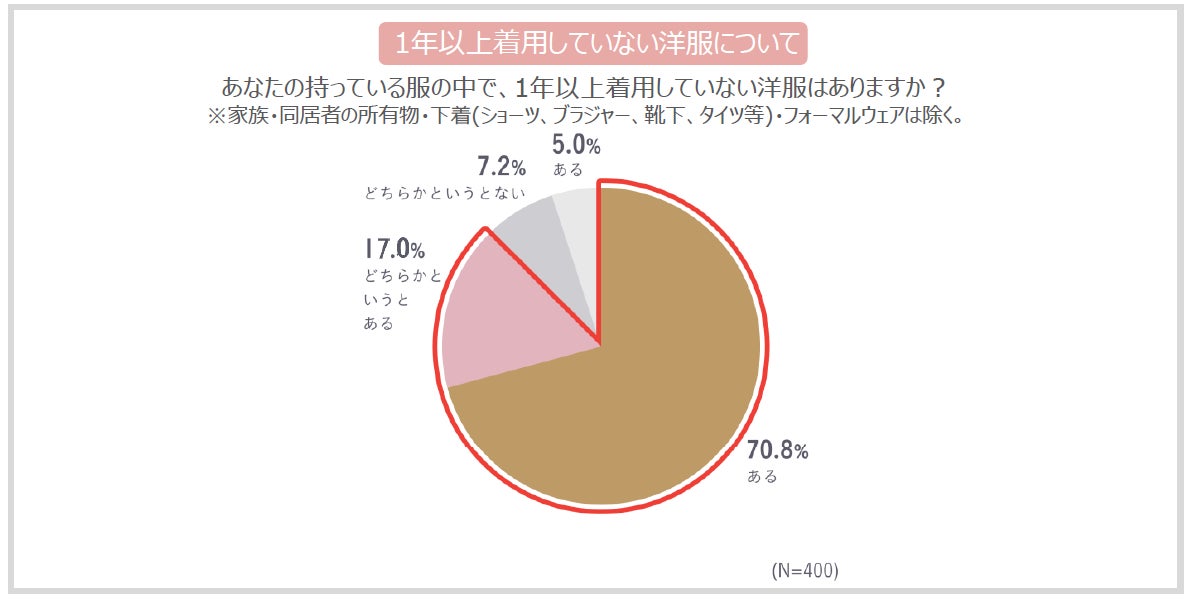 今回の調査では、多くの人が自宅にある洋服をフル活用できておらず、更に5枚に1枚が1年以上着用していない行き場を失った「迷子服」となっていることが明らかになりました。