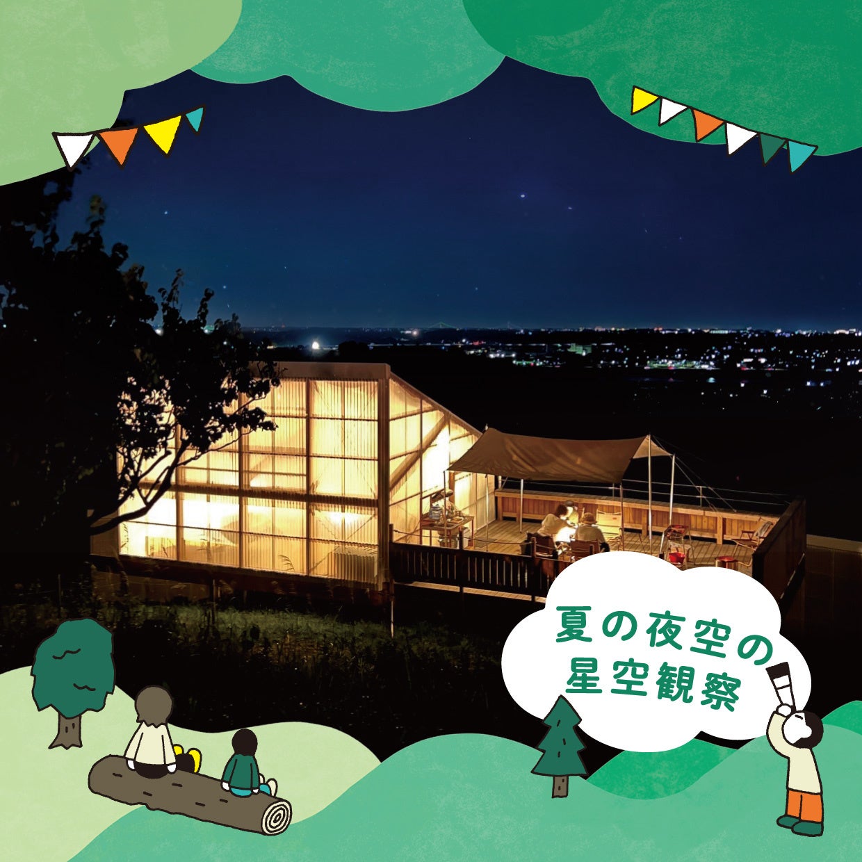 展望台の上で夏の星空を観察したり、焚火を囲んでスモア作りをして、夏の夜を楽しみましょう。