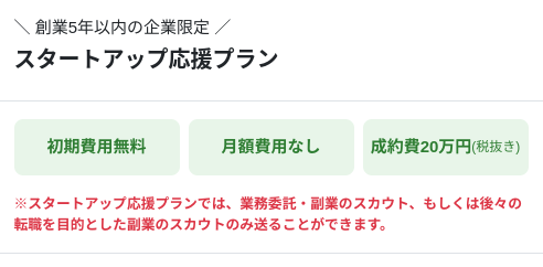 ※スタートアップ応援プランでは、「業務委託」「副業」のスカウト及び、「今後の転職を目的とした副業」のスカウトのみ送信が可能です。