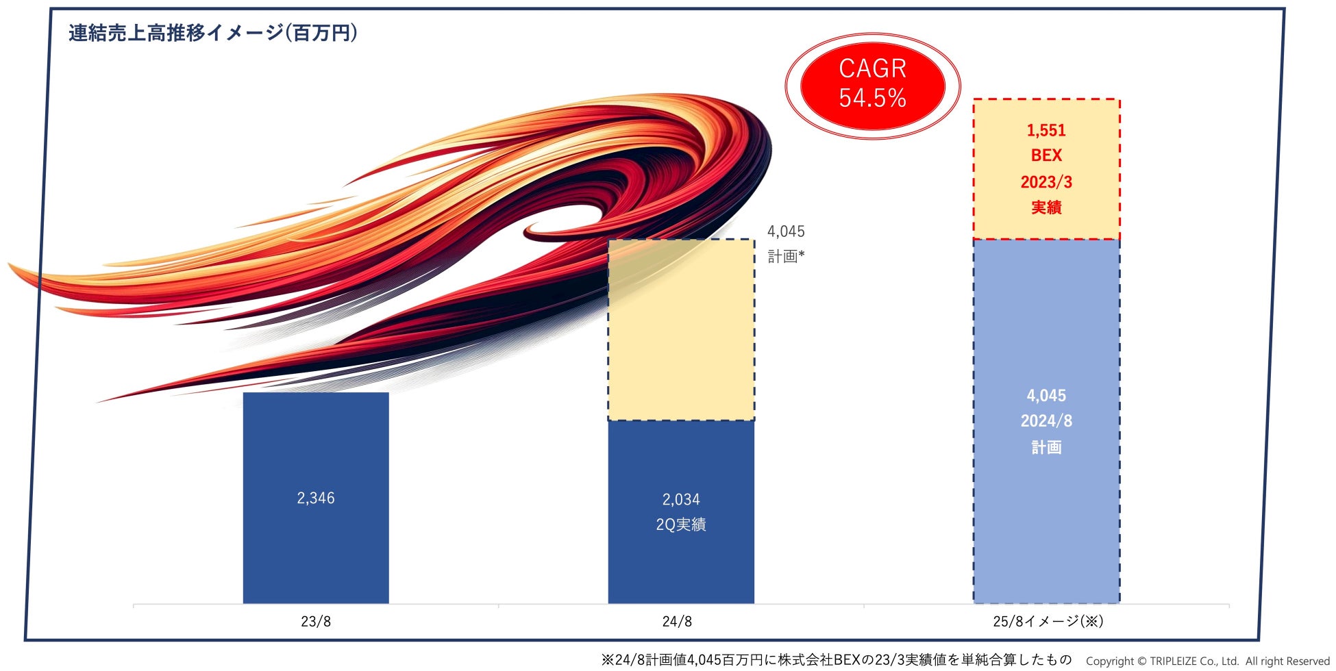 今回、トリプルアイズがグループに迎え入れるBEXは、1980年の創業以来、自動車分野における機械設計開発事業、先端技術領域の研究・実装(AI研究、EV設計)、ITシステムの設計開発事業を展開してきました。「“世界のクルマ”を支える存在になろう」をビジョンに掲げ、エンジニア集団としての技術力を信頼され、取引先の70%はトヨタグループであり、同グループ内で高い受注シェアを誇ります。高い設計力と発想力で同社エンジニアが関わった特許出願は100を超えます。大手メーカーの自動車設計開発という魅力的な事業内容を背景とした安定した採用と優れた育成環境から197名のエンジニアを擁しています。直近3カ年は順調に売上高を伸張し、手堅く利益計上しています。