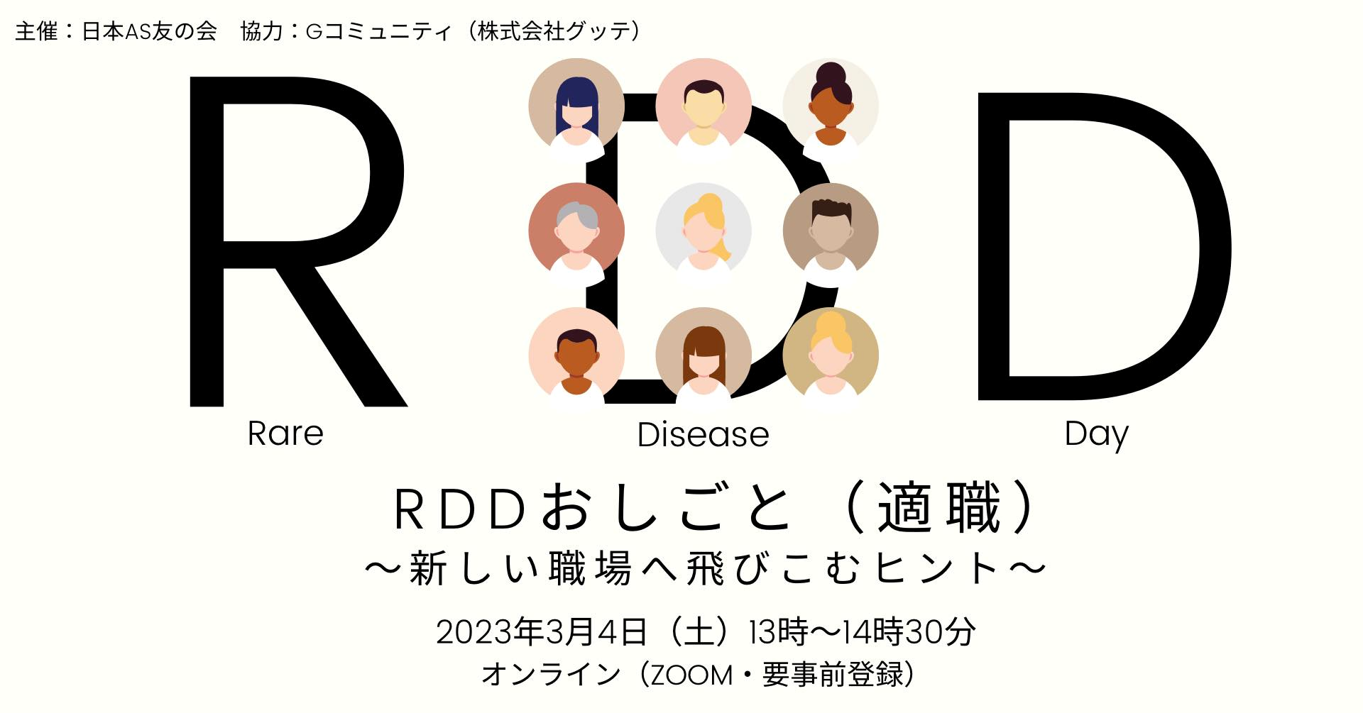 潰瘍性大腸炎・クローン病等の炎症性腸疾患(Inflammabotry Bowel Disease:IBD)オンラインコミュニティ「Gコミュニティ」やIBD患者さん向けレシピサイト「グッテレシピ」を運営する株式会社グッテ(所在地:東京都千代田区・代表取締役 宮﨑拓郎)は、日本AS友の会(所在地:東京、会長:塩野敬彦)と2月末のRare Disease Day (世界希少・難治性疾患の日、以下RDD)に合わせたRDD Japan公認イベントRDDおしごと(適職)2023を開催することをお知らせします。