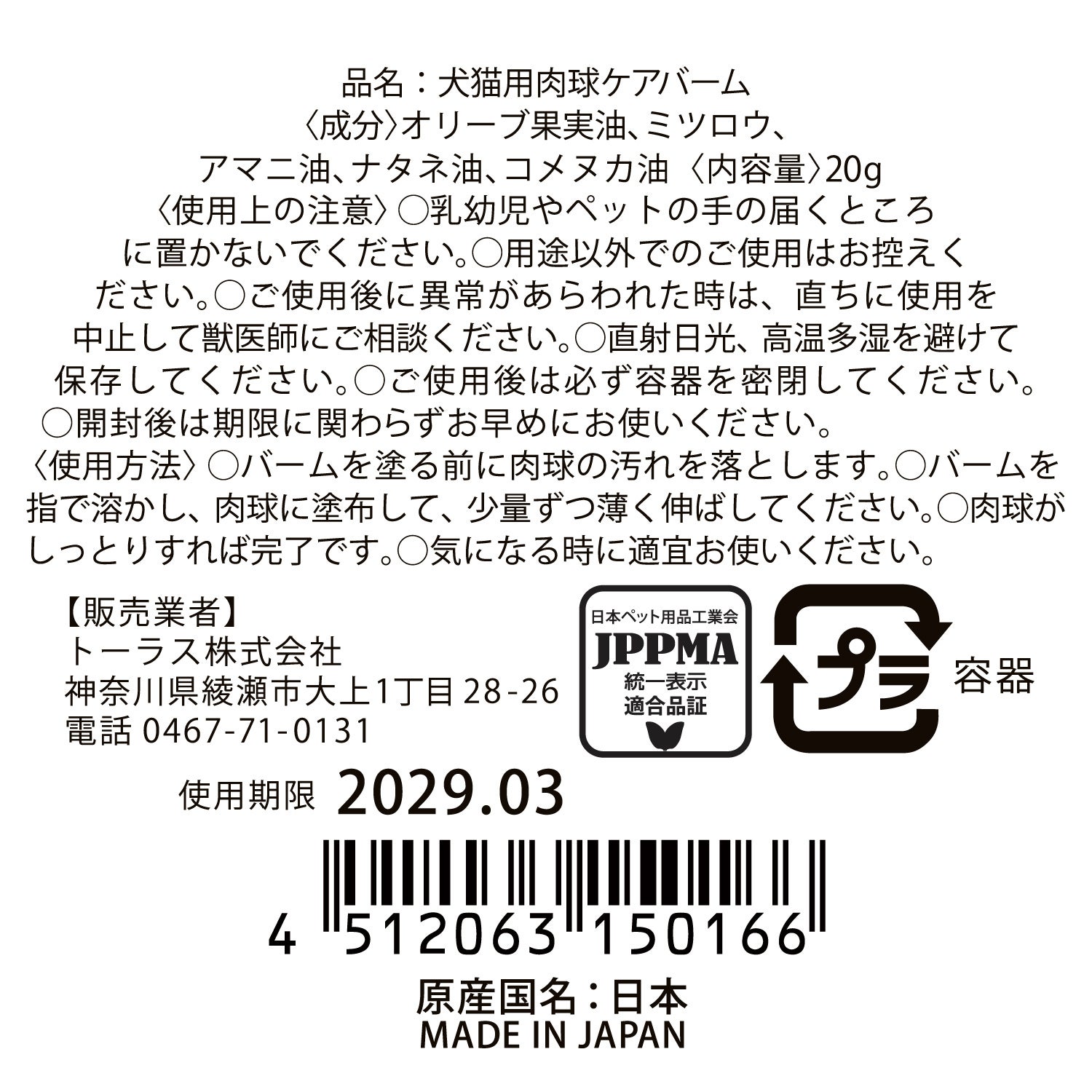 トーラス株式会社は、このような環境変化と飼い主の意識の高まりを受け、肉球ケアを**「守る」だけでなく「育む」ものとして再定義しました。毎日のケアを、単なる習慣ではなく、ペットとの信頼関係を深める時間へと変えていきたい――その想いから、自然由来成分にこだわった100%自然由来の足裏ケア「みつろうバーム」**を開発しました。