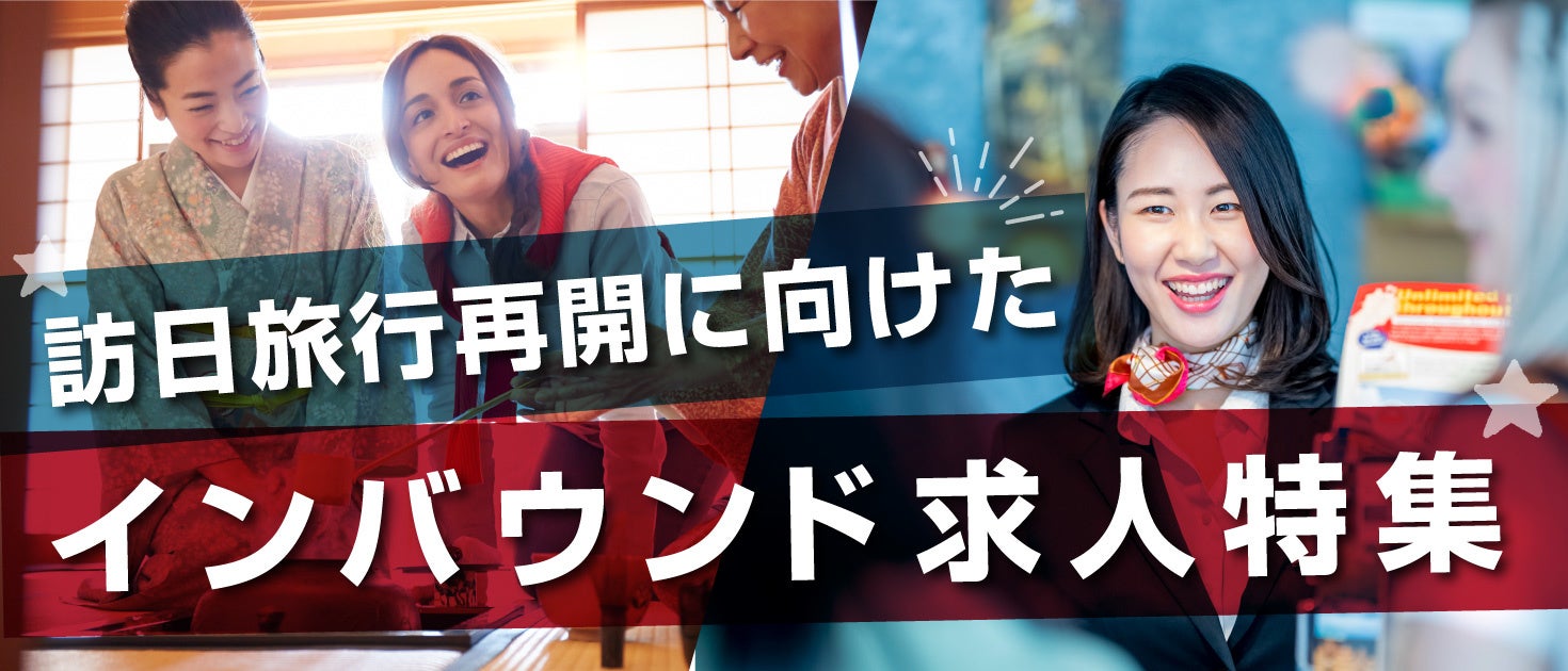 インバウンド関連求人の掲載も少しずつ増えてきていることから、「インバウンド求人特集」を公開することとなりました。ぜひ本特集より、インバウンド関連求人にご応募ください!