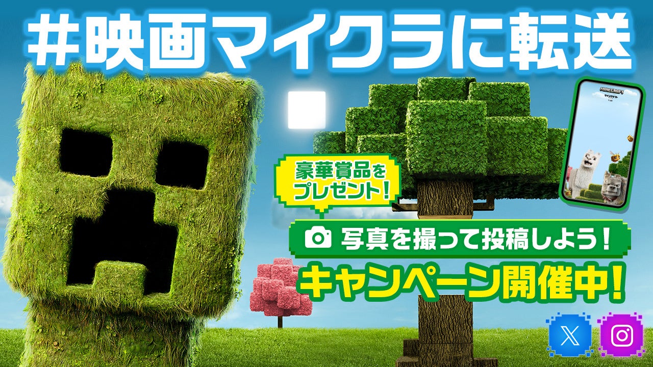 ①映画『マインクラフト/ザ・ムービー』公式Xアカウント(@minecraft_mjp)、またはワーナーブラザース公式Instagram(@warnerjp_official)をフォロー