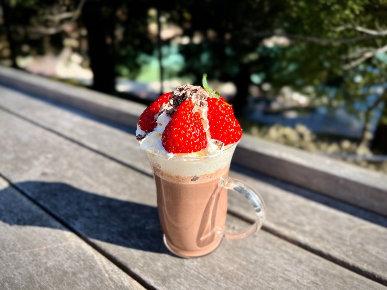 グランヴォーカフェでは、地元のいちご農園のいちごを使用したチョコレートスイーツを期間限定で提供。