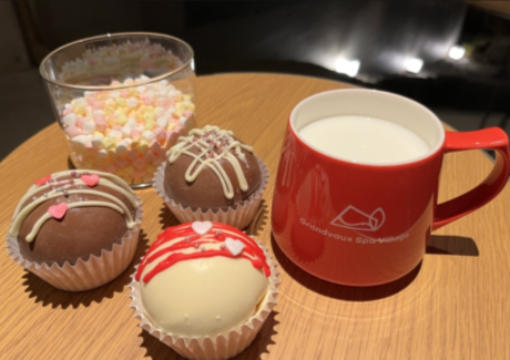 「グランヴォー スパ ヴィレッジ」内にある「グランヴォーカフェ」では、地元のいちご農園で獲れたいちごを使用したチョコレートスイーツ「フォンダンショコラ」と「ホットチョコレート」を期間限定で提供します。チョコレートの甘さといちごの甘酸っぱさが織りなす絶妙なハーモニーはバレンタインにもぴったりです。