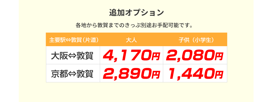 大阪⇔敦賀 (大人) 4,170円 (子供) 2,080円