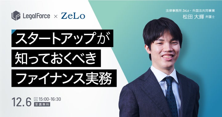 関連ウェビナー「スタートアップが知っておくべきファイナンス実務 シードからレイターまで 投資ラウンドごとに解説!」を12月6日(火)に開催