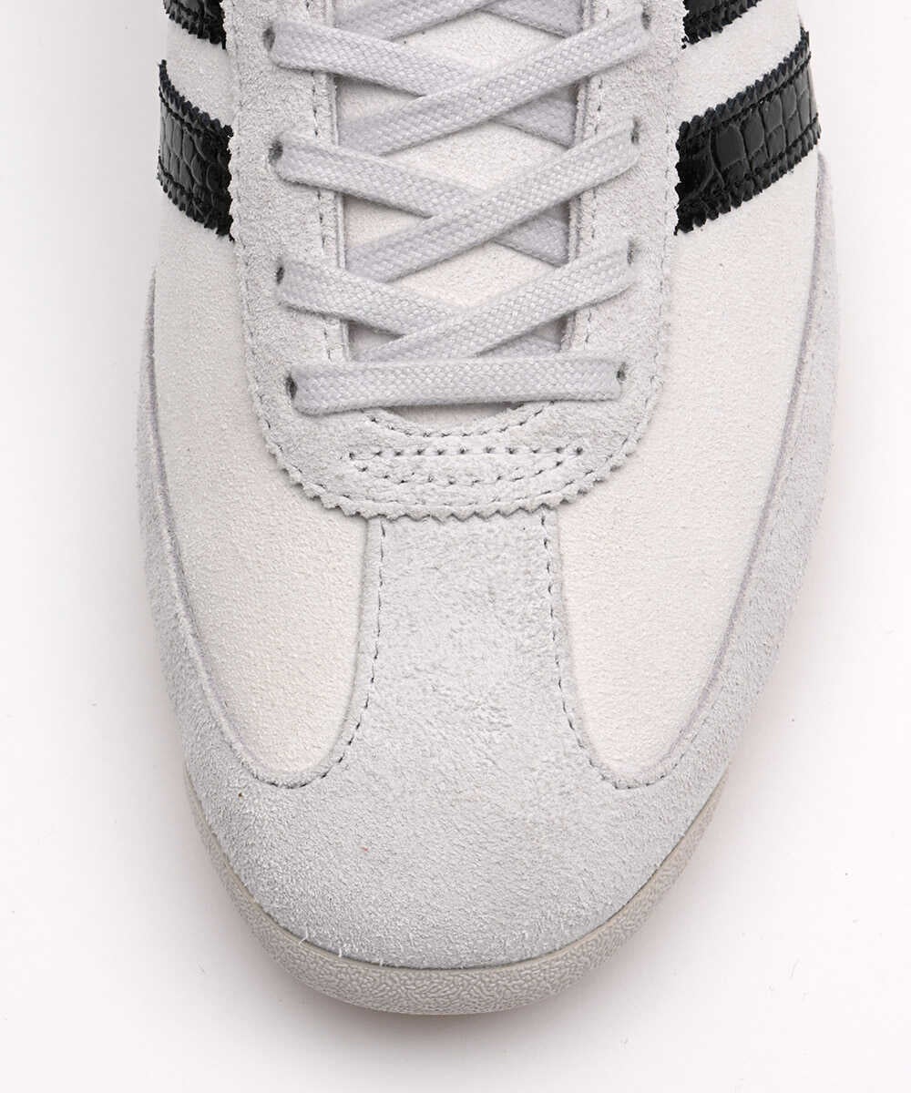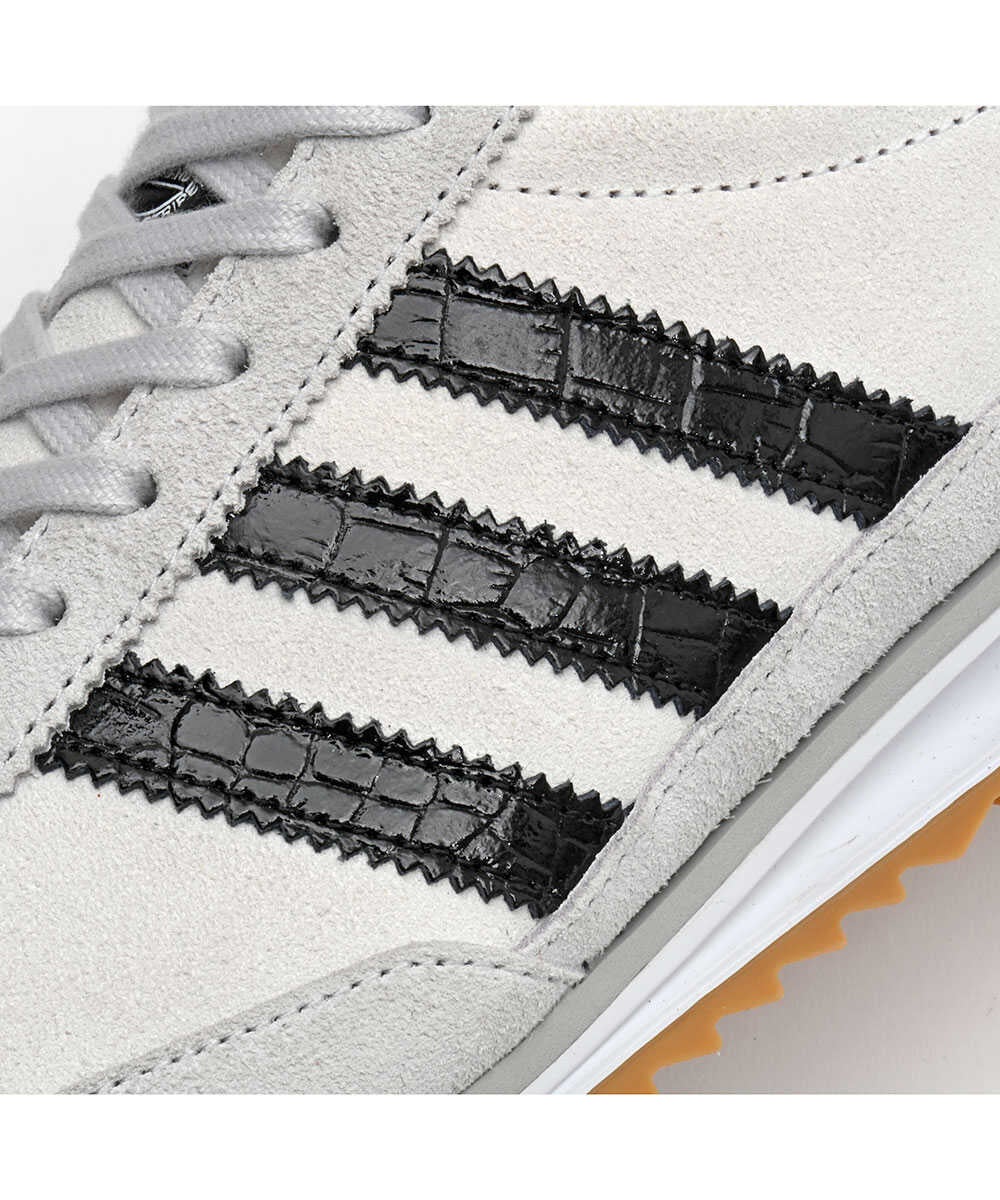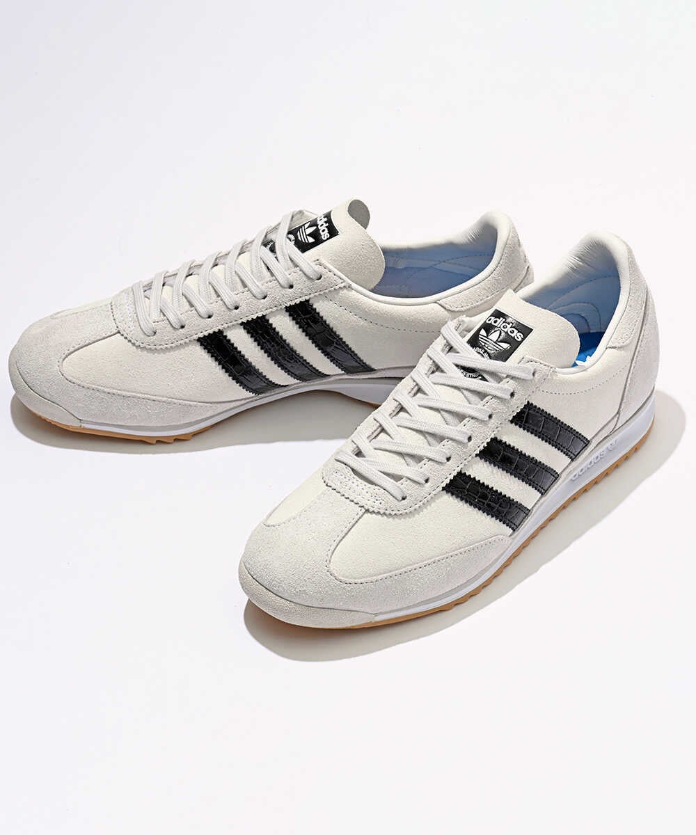 この限定のアディダス オリジナルス“SL 72 OG”は、レトロな風合いはそのままに、通常なナイロンとスウェードのオーバーレイで構成されるアッパー素材を、全てスウェードに変更。またアイコンのスリーストライプスもクロコダイルの型押しレザーにし、リッチ感のある仕様に仕上げました。カラーリングもホワイト×ブラックで、都会的な大人のライフスタイルに似合う1足となっています。