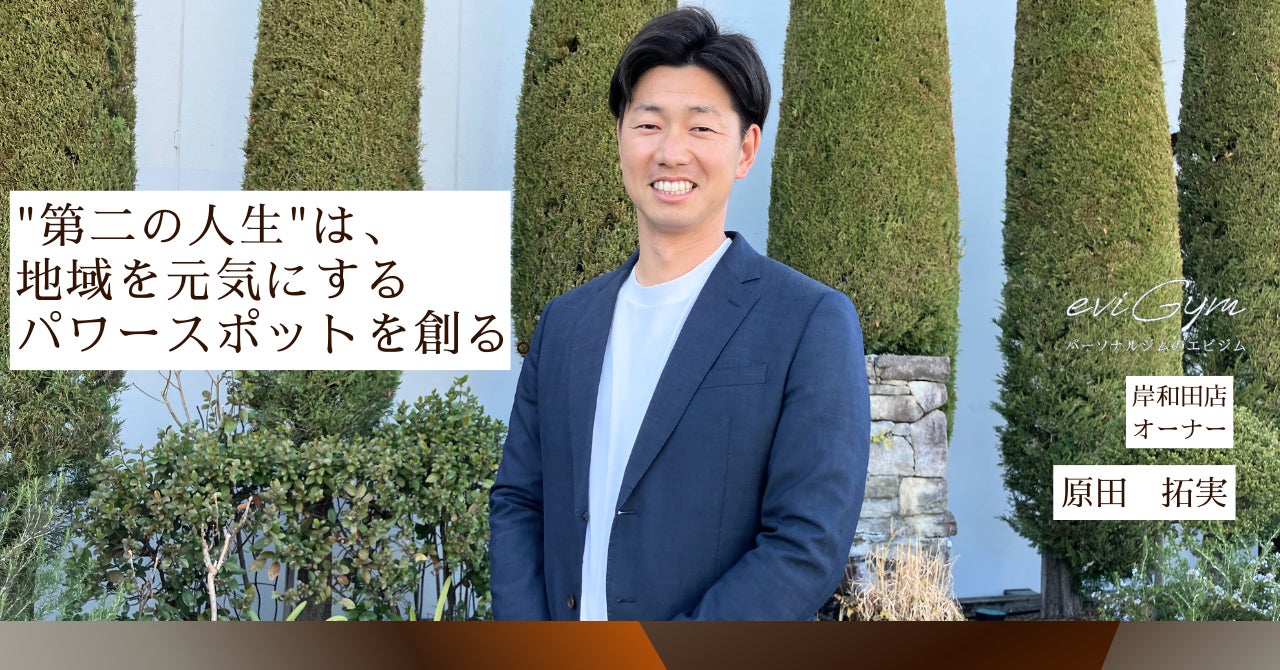 eviGymは『すべての人に”こころと身体を動かす”運動習慣を』大切にしています。運動は心身を豊かにする人間本来の営みです。今回オーナーとなる原田拓実氏は私の教え子であり、彼の持つ『不屈の精神』と地域への熱意はeviGymの目指す姿と重なります。お客様に『運動って楽しい!』と感じていただけるよう、原田氏と共に岸和田店のトレーナー一同、全力でサポートいたします。岸和田店が皆様の『パワースポット』となることを願っています。