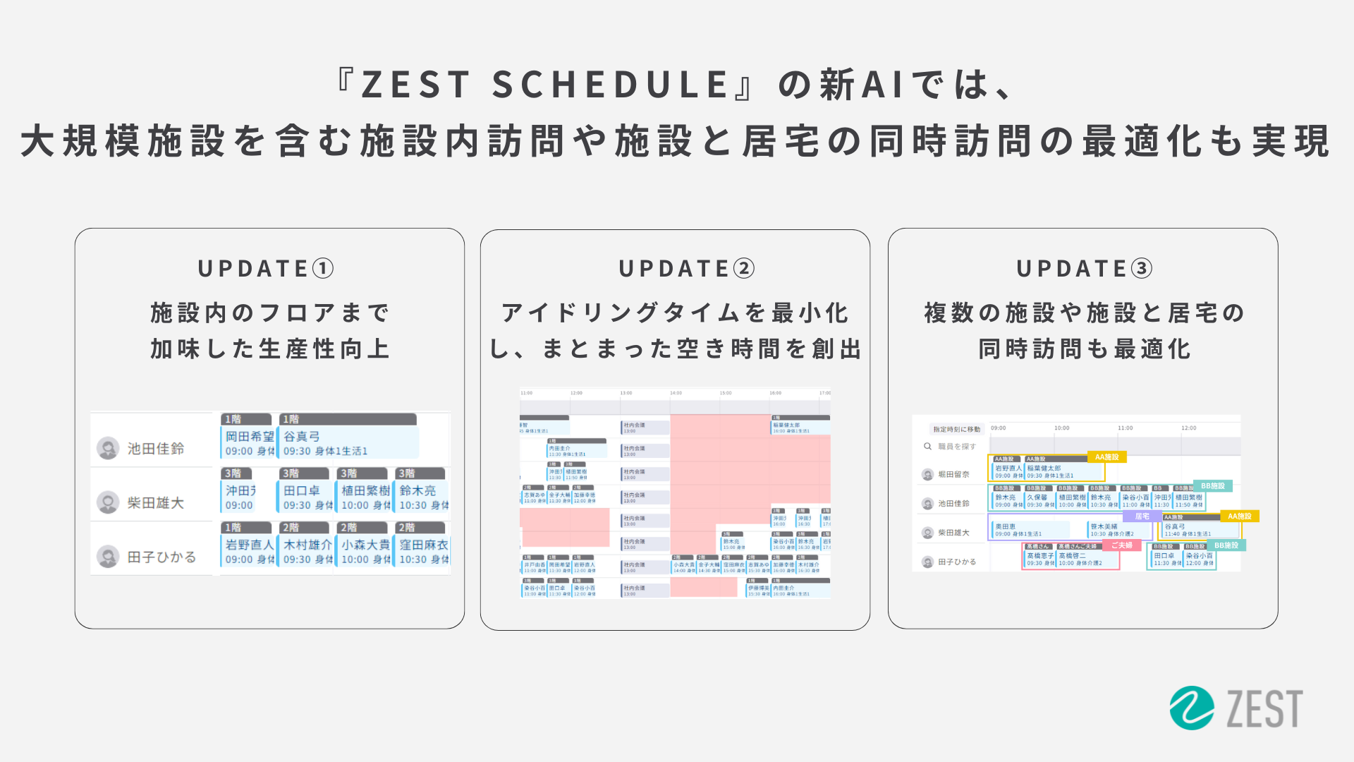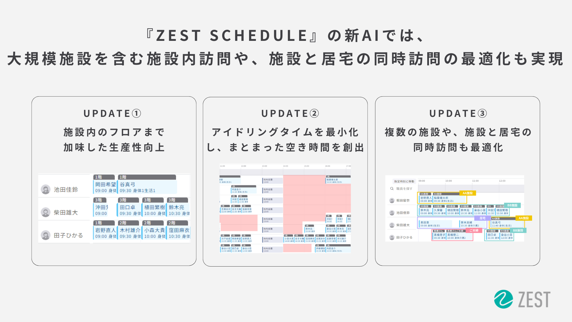 訪問スケジュール自動作成クラウド『ZEST』が施設内訪問介護・看護の生産性を大幅に向上!AIによるスケジュール自動作成機能をアップデート