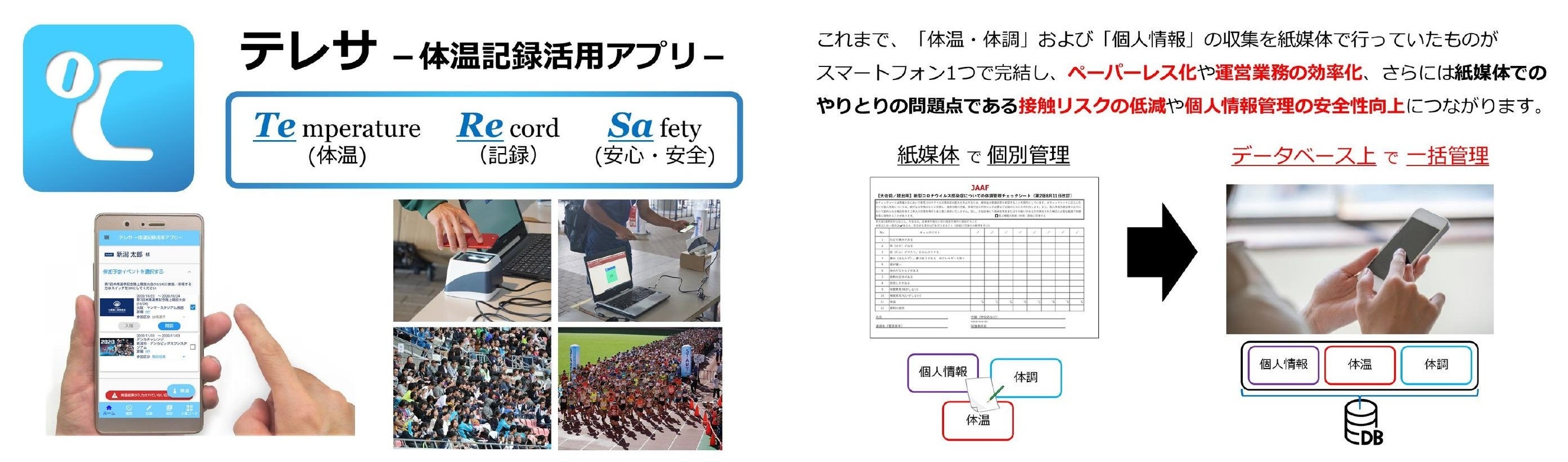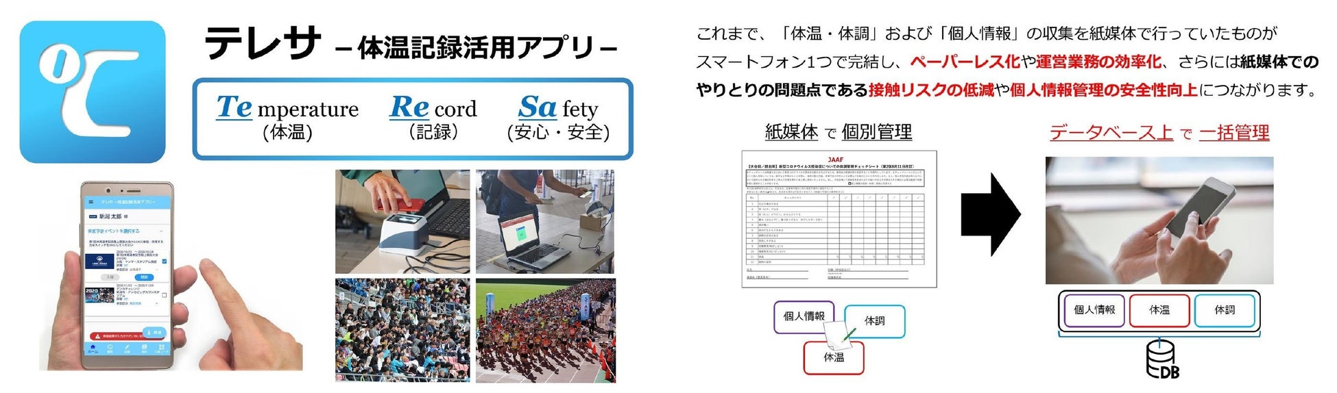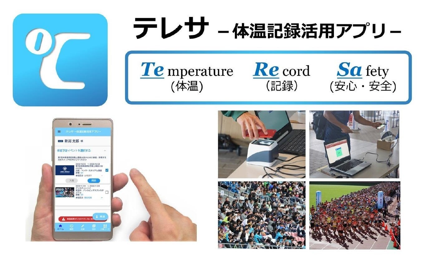 2020年9月に誕生した「テレサー体温記録活用アプリー」は、おかげさまで、国内のスポーツイベントやマラソン大会など、多くのみなさまにご利用いただいております。誠にありがとうございます。