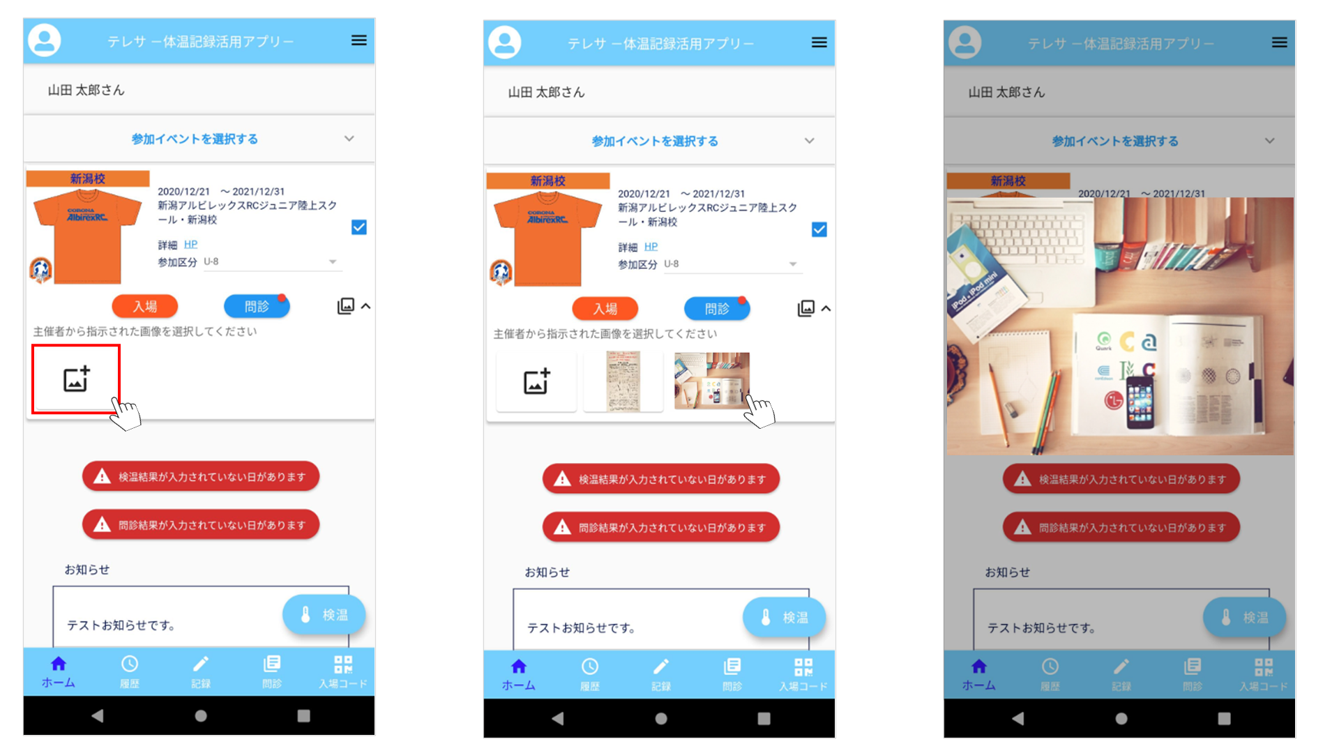 ワクチン接種証明やPCR・抗原検査の陰性証明などの画像を添付できるようになり、管理者への事前報告をスムーズに行うことが可能となりました。また、管理者はユーザーが添付した画像をリアルタイムで確認することができます。