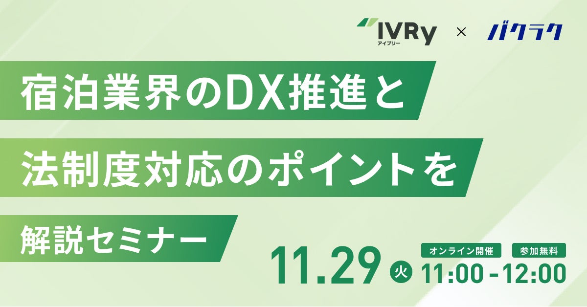【IVRy × バクラク】2023年に向けた宿泊業界のDX推進、法制度対応のポイント解説セミナーを開催決定