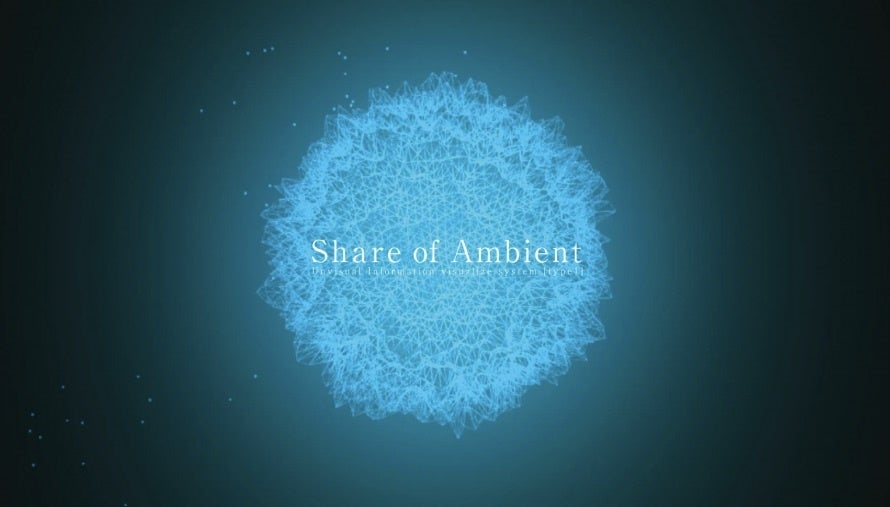 Share of AmbentはRICOH 3L×Metalium llcとの共同研究によって開発された"雰囲気可視化システム"です。このシステムでは人と人とが普段取り交わす情報伝達媒介を喋る言葉だけではない、周辺環境音の情報を取り込み色と形によってヴィジュアライズすることで共感覚一致を発生させ、潜在的なコミュニケーションの可能性を体験することができます。