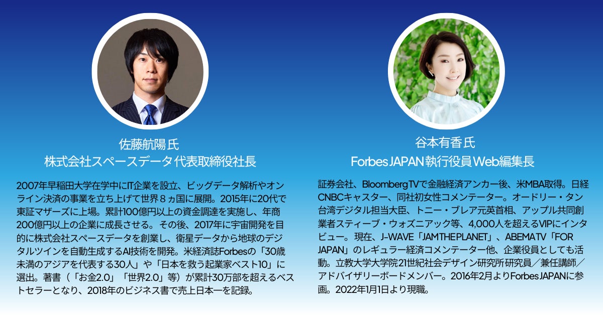 - SPACEDATA CEO 佐藤航陽氏 × Forbes JAPAN 執行役員 Web編集長 谷本有香氏
