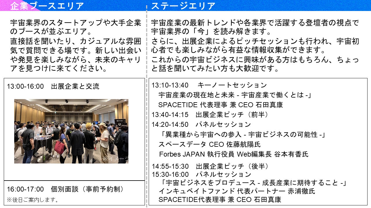 当日は、「企業ブースエリア」と「ステージエリア」の2エリアに分かれてイベントを開催いたします。