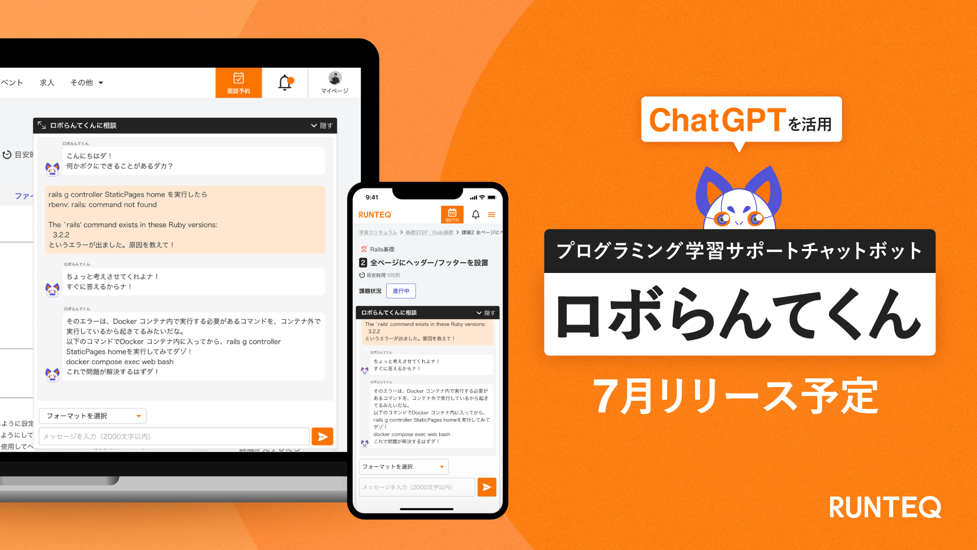 RUNTEQを運営する株式会社スタートアップテクノロジーがChatGPTを活用して蓄積した学習ナレッジを回答するプログラミング学習サポートチャットボット「ロボらんてくん」を7月リリース