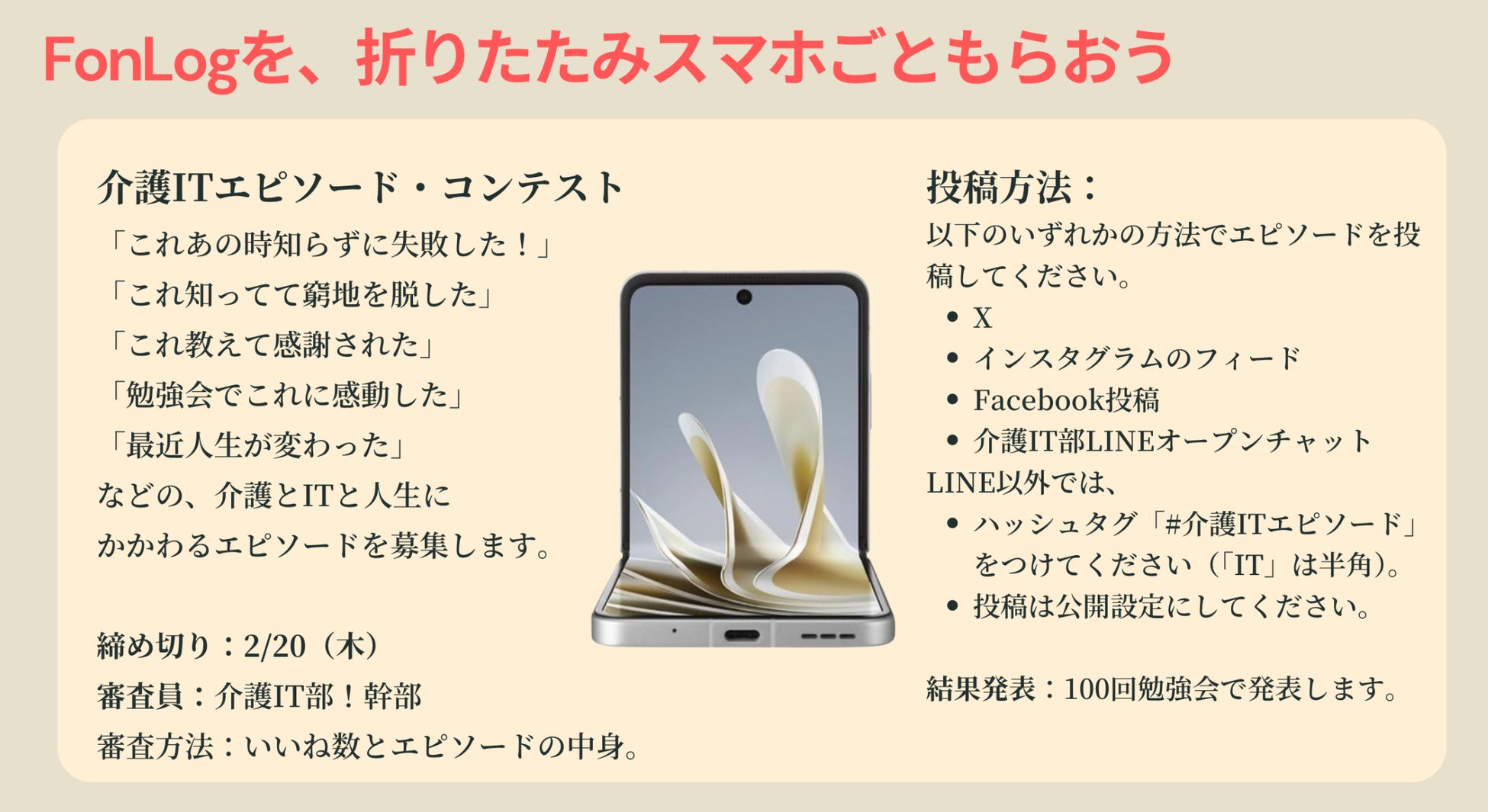 ベストエピソードに選ばれた方に【折りたたみスマホ】をプレゼント
