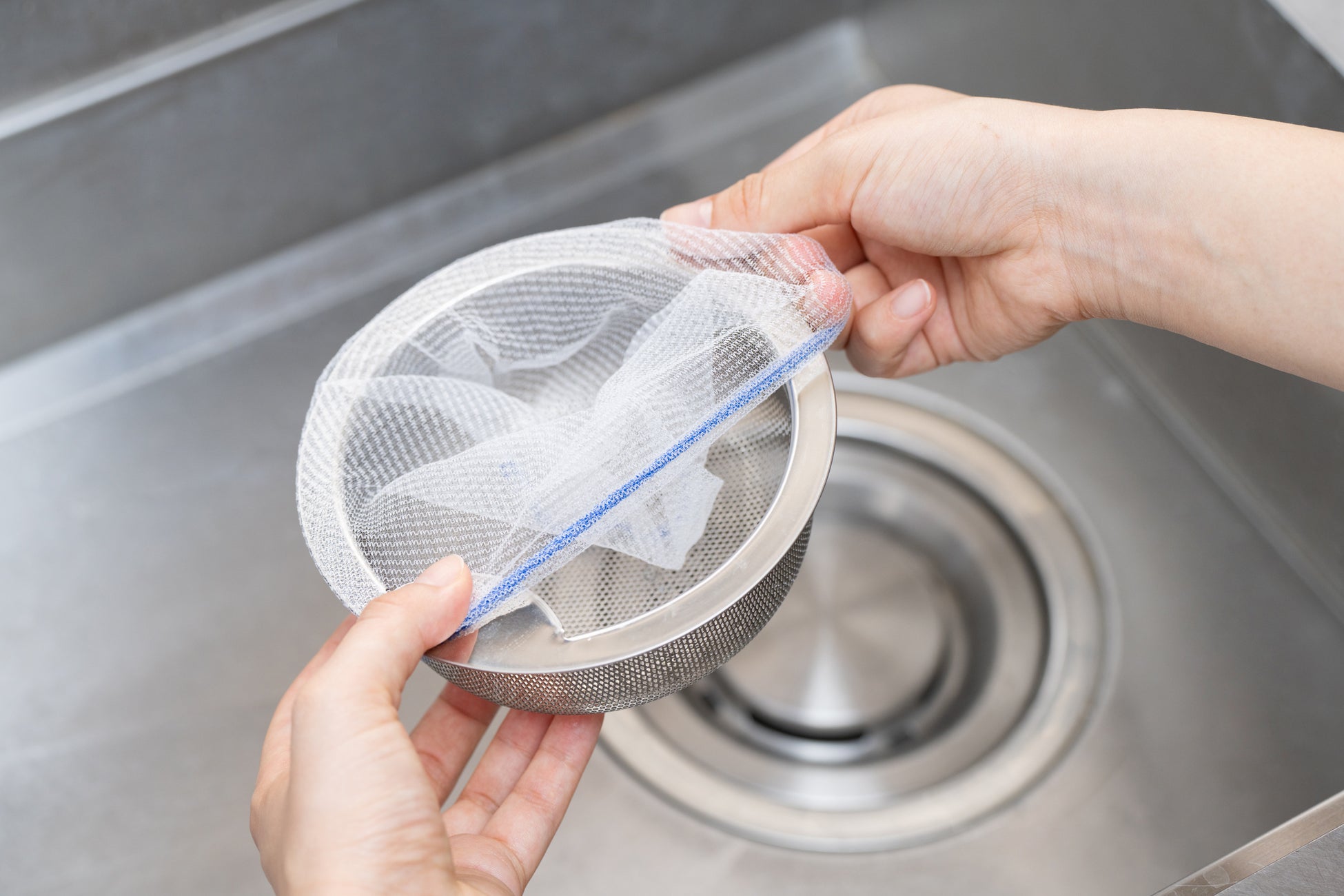 ダストマンストッキングタイプは、細かい編み目のストッキング素材で、小さなゴミもしっかりキャッチし水切れもスムーズな水切りゴミ袋です。