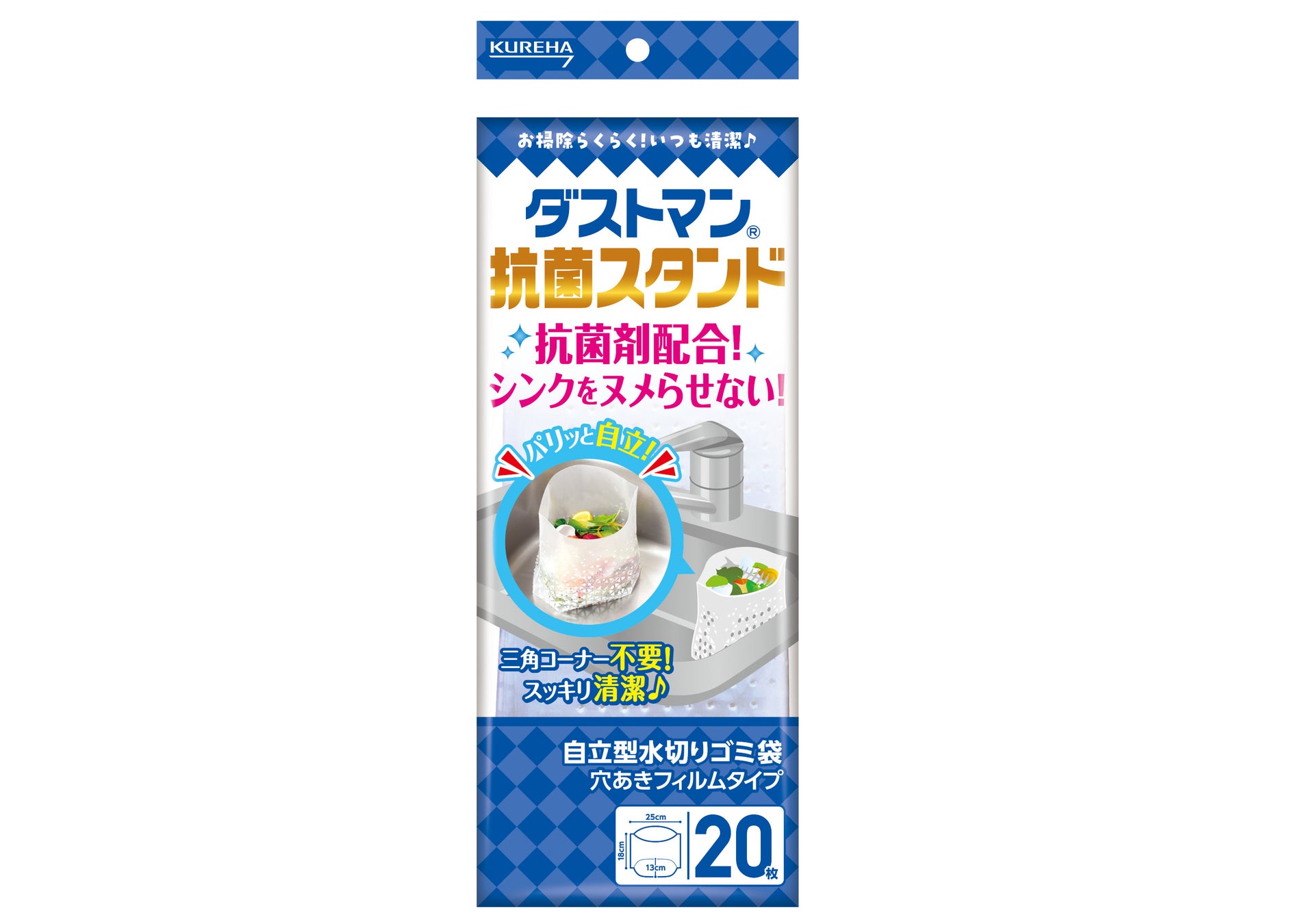 ダストマン抗菌スタンドは、シンクに広げてポンと置くだけで使える、自立型水切りゴミ袋です。