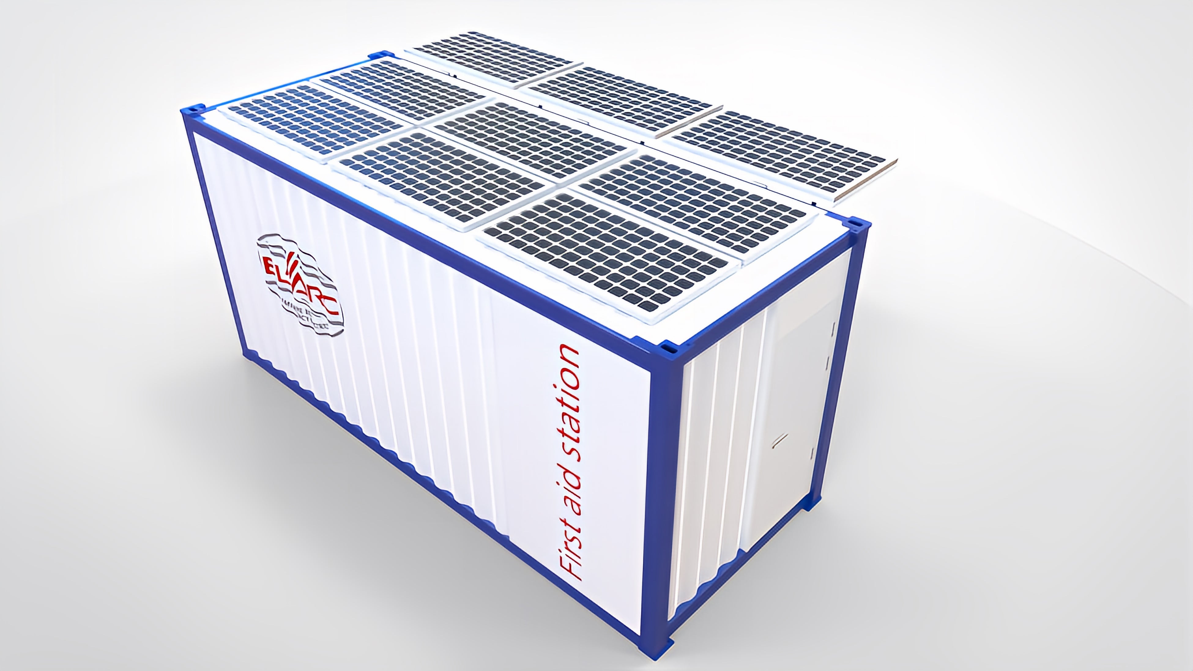 「エルアーク®シェルター」は耐久性・居住性に優れた建築用コンテナに、太陽光発電システムと蓄電機能を搭載した運搬・移動が可能な施設です。