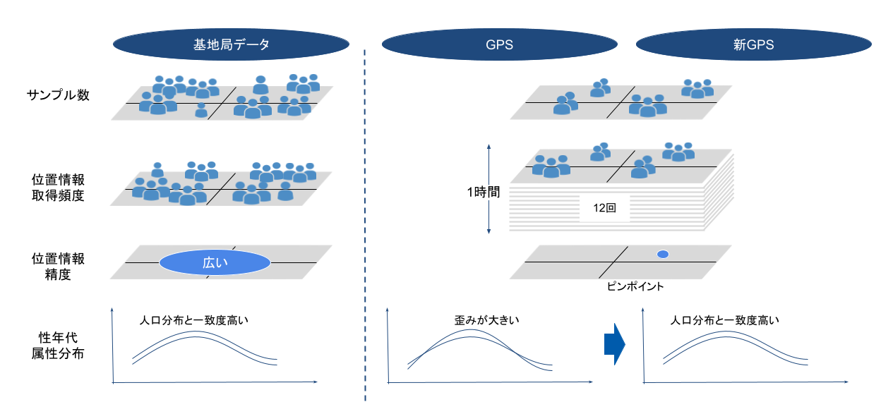 「モバイル空間統計®」 により拡大係数を調整したGPS統計データを開発し、より高精度なデータを提供