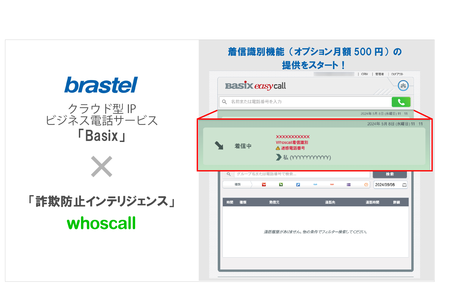 Whoscallの「詐欺防止インテリジェンス」とブラステルのクラウド型IP電話サービス「Basix」が連携 詐欺・迷惑電話など不審な着信元を自動で識別し、業務効率化を実現