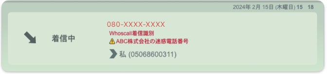 <スマートフォン(Whoscall)で表示される画面イメージ>