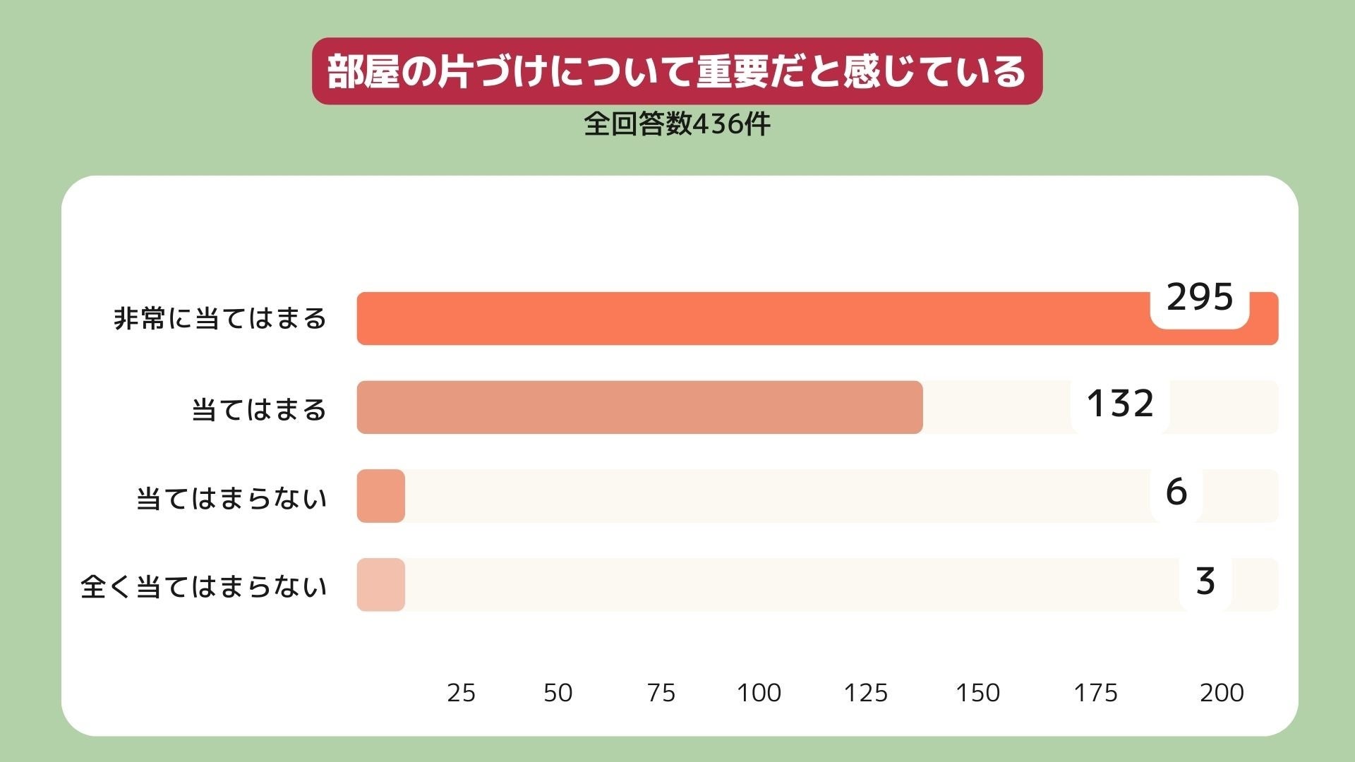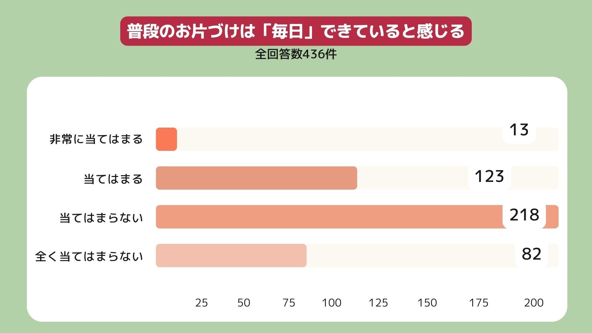 申込者436名中300名(約69%)が片づけは「毎日」できていないと感じていることがわかりました。