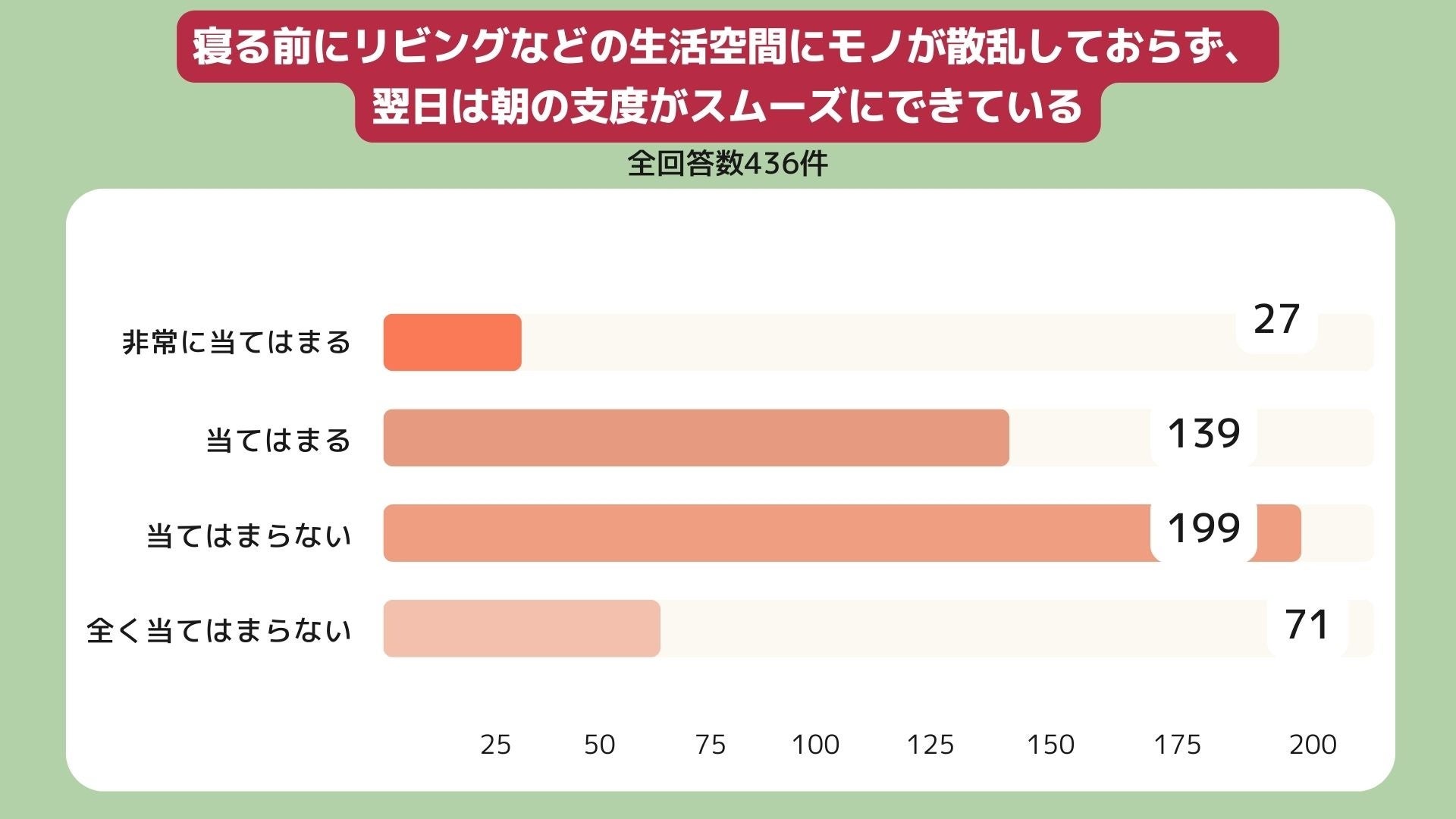 Q7.寝る前にリビングなどの生活空間にモノが散乱しておらず、翌日は朝の支度がスムーズにできている