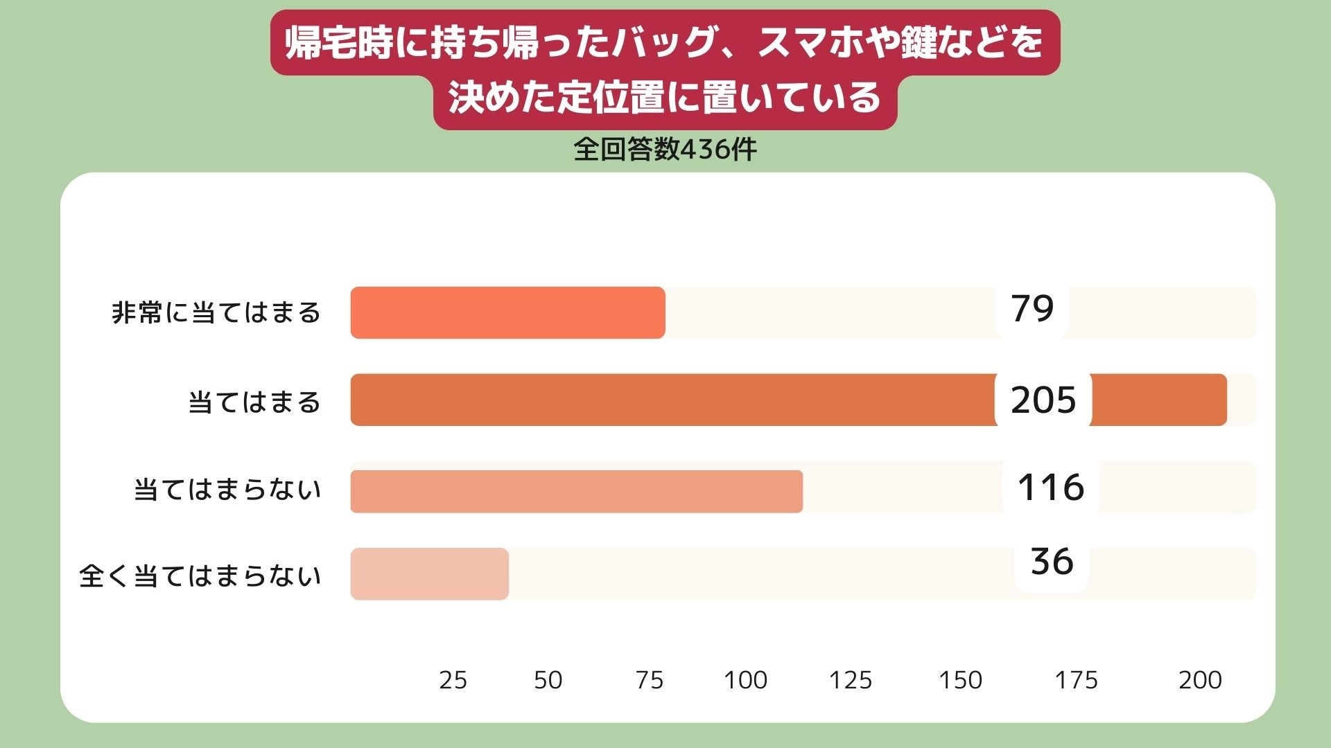 Q2.帰宅時に持ち帰ったバッグ、スマホや鍵などを決めた定位置に置いている。