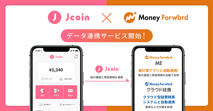 株式会社みずほ銀行が提供し、全国90以上の金融機関が参画するQRコード(※1)及びバーコードを活用したスマホ決済サービス 『J-Coin Pay(ジェイ コイン ペイ)』において、希望するユーザーさま向けに、株式会社マネーフォワードが提供するお金の見える化サービス『マネーフォワード ME』や、クラウド型経費精算システム『マネーフォワード クラウド経費』を始めとする各種サービス(※2)とのAPI連携を開始しました。
