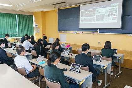 人に言いたいことを伝える手段を学ぶ生徒は普段から使用する1人1台のiPadを机上に置いて、