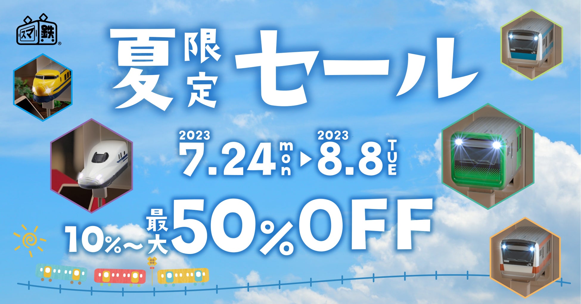 今回のセールでは日頃のご愛顧に感謝を込めて、7/24(月)-8/8(火)の期間限定*で、オンラインショップの製品全て10%OFFとする他、「新幹線3種セット」「在来線4種セット」などの通常から約15%お得なセットを、さらに50%OFFでご提供します。