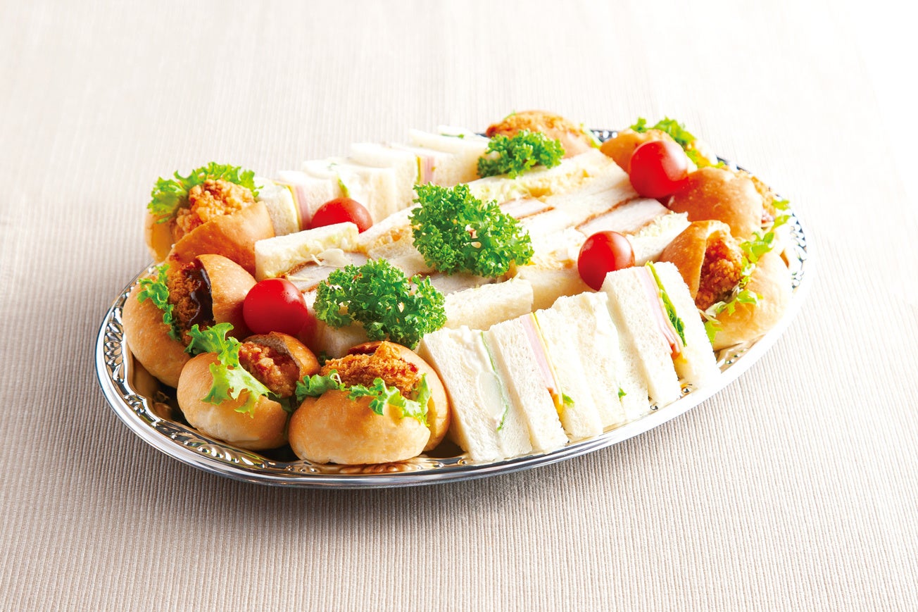 タマゴやハム、ポテトのサンドイッチやコロッケのミニバーガーなど、バラエティー豊かなサンドイッチを集めた食べごたえ抜群のパーティーサンド。