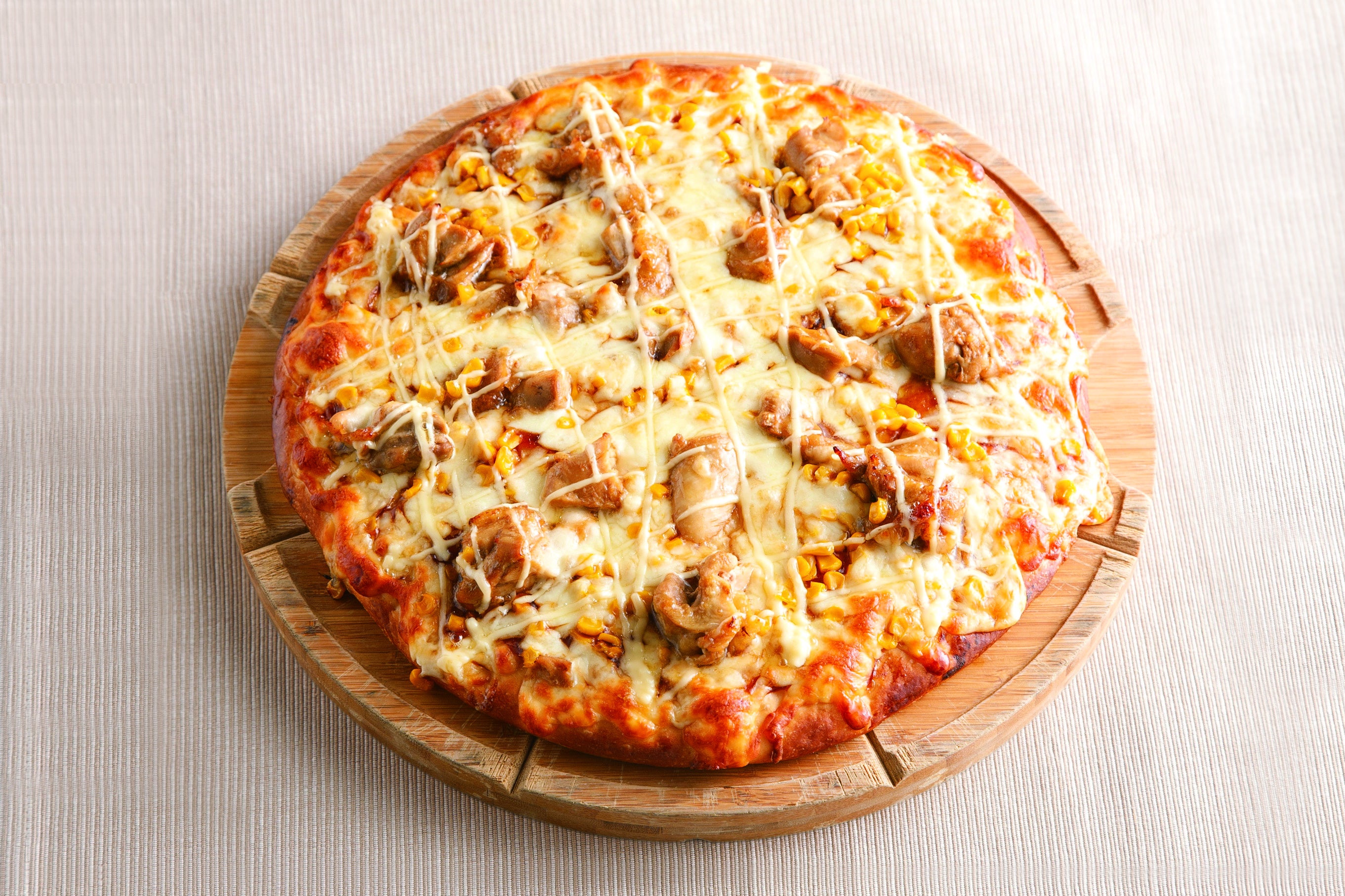 ふわふわのピザ生地の上に照り焼きチキンをゴロゴロのせました。