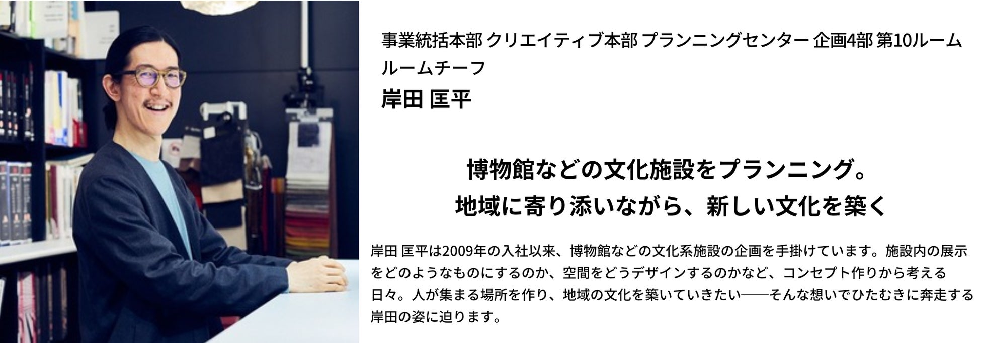 博物館などの文化施設をプランニング。地域に寄り添いながら、新しい文化を築く