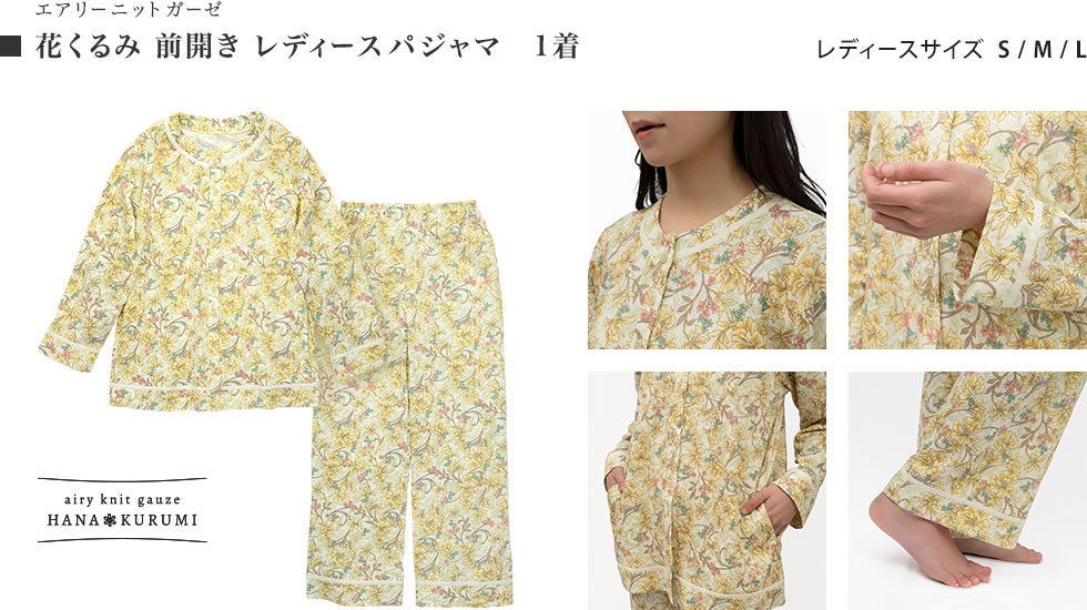 お母さんのお顔をパッと明るく華やかにしてくれる黄色の花柄デザイン。そして、赤ちゃんの肌着にも使われる優しい素材で作られた、綿100%・2重仕立てのニットガーゼ「花くるみ」シリーズのパジャマ・ワンピースが、母の日に合わせてブーケラッピング付きのギフトセットとして販売開始しました。花束の裏側にパジャマを包み込んだ当店オリジナルの『パジャマブーケ®︎』ブーケを解くと中からパジャマが出てくる仕様で、1度で2度の驚きを演出できます♪