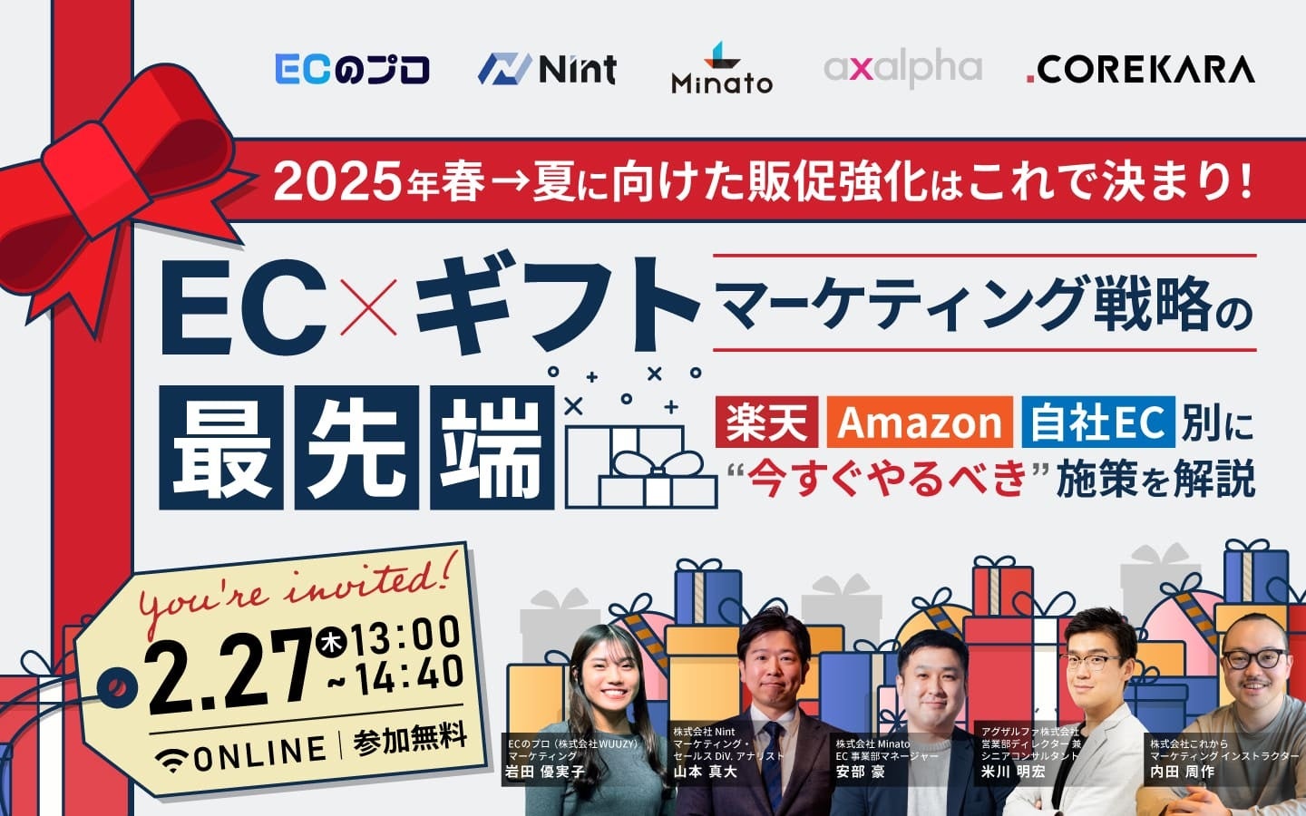 【2/27(木)ウェビナー】『\2025年春→夏に向けた販促強化はこれで決まり!/EC×ギフトマーケティング戦略の最先端~楽天・Amazon・自社EC別に“今すぐやるべき”施策を解説~』をテーマに共催