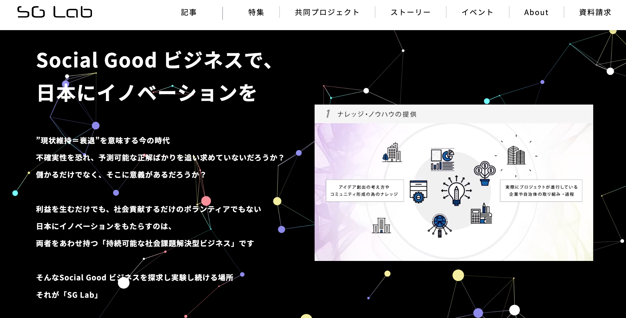 2022年3月に立ち上げた 最短で事業仮説の検証を行うサービス『Social Good Lab』(以下SG Lab)から派生したオウンドメディア「SG Lab」を2022年6月10日にリリースいたしました。