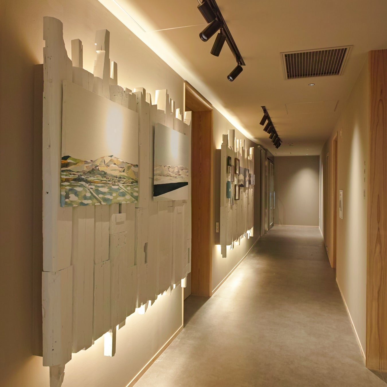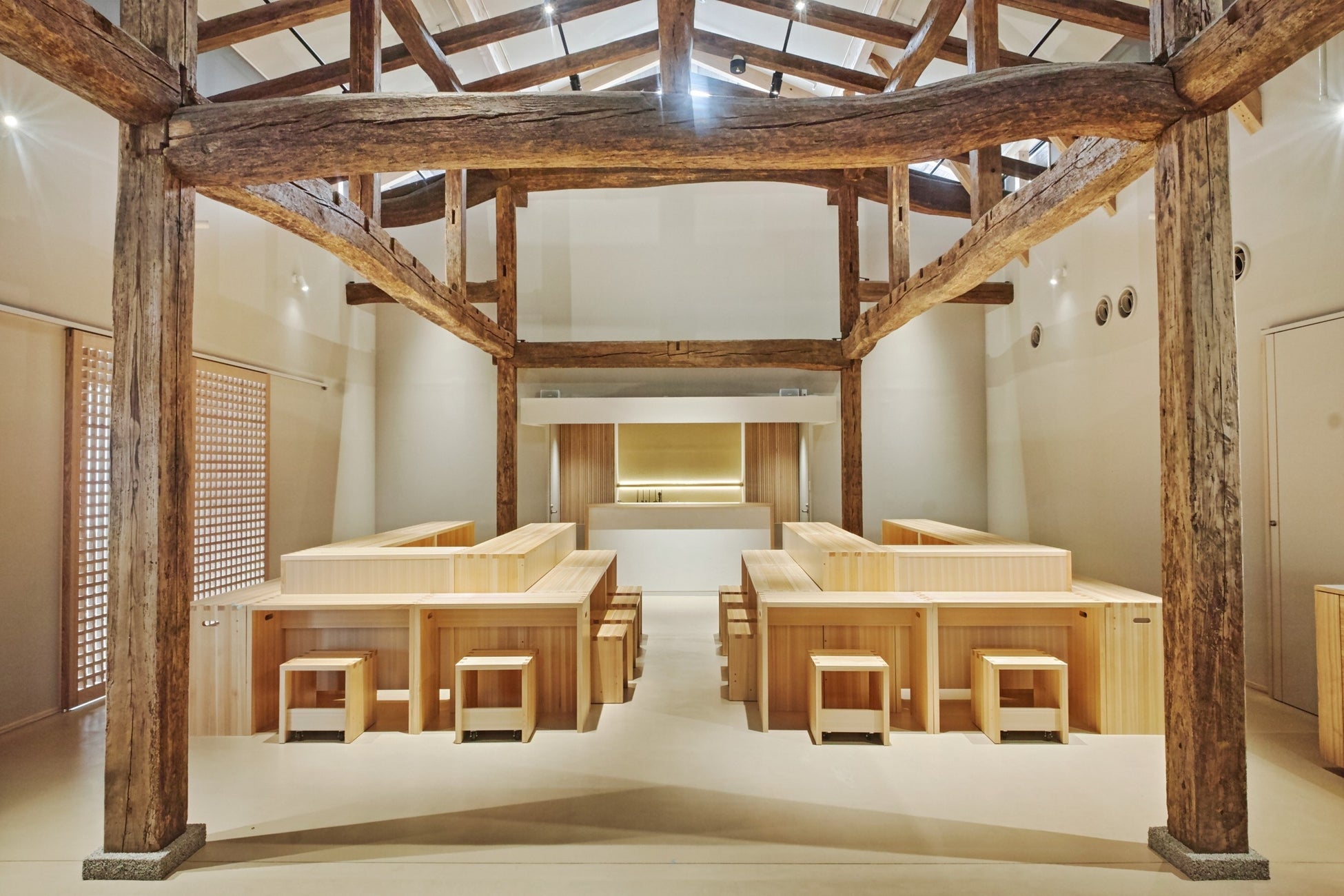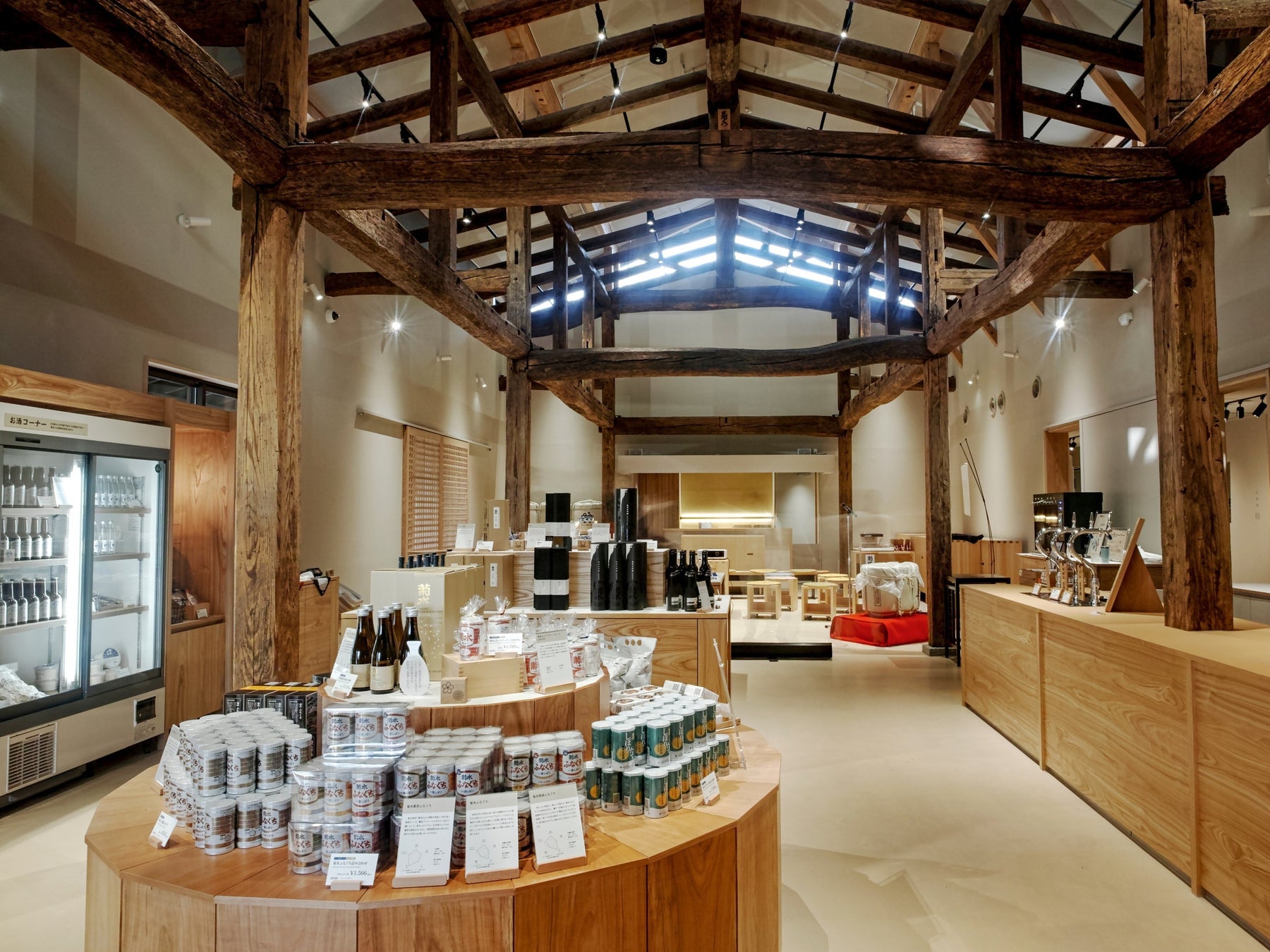 醤油蔵の記憶とともに、時を味わう空間。このギャラリーは、かつて創業家が使用していた醤油蔵の古材を壁面に再利用し、時を重ねた木の温もりを感じられる空間に仕上げました。